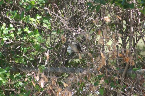 They hide in the bushes and can be very, very hard to see. Trust me, he’s there!