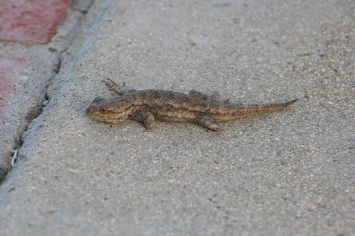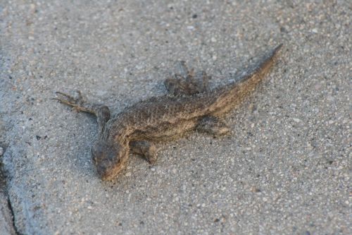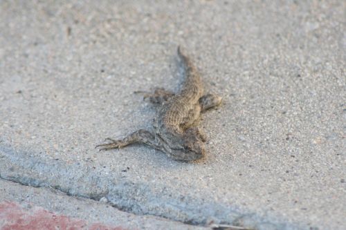 In looking back at the pictures from earlier in the week, it all became clear. He’s not just missing part of his tail – he’s missing his feet and part of his legs on his left side. I didn’t see it earlier, but in the pictures from last weekend, so is the second lizard there.