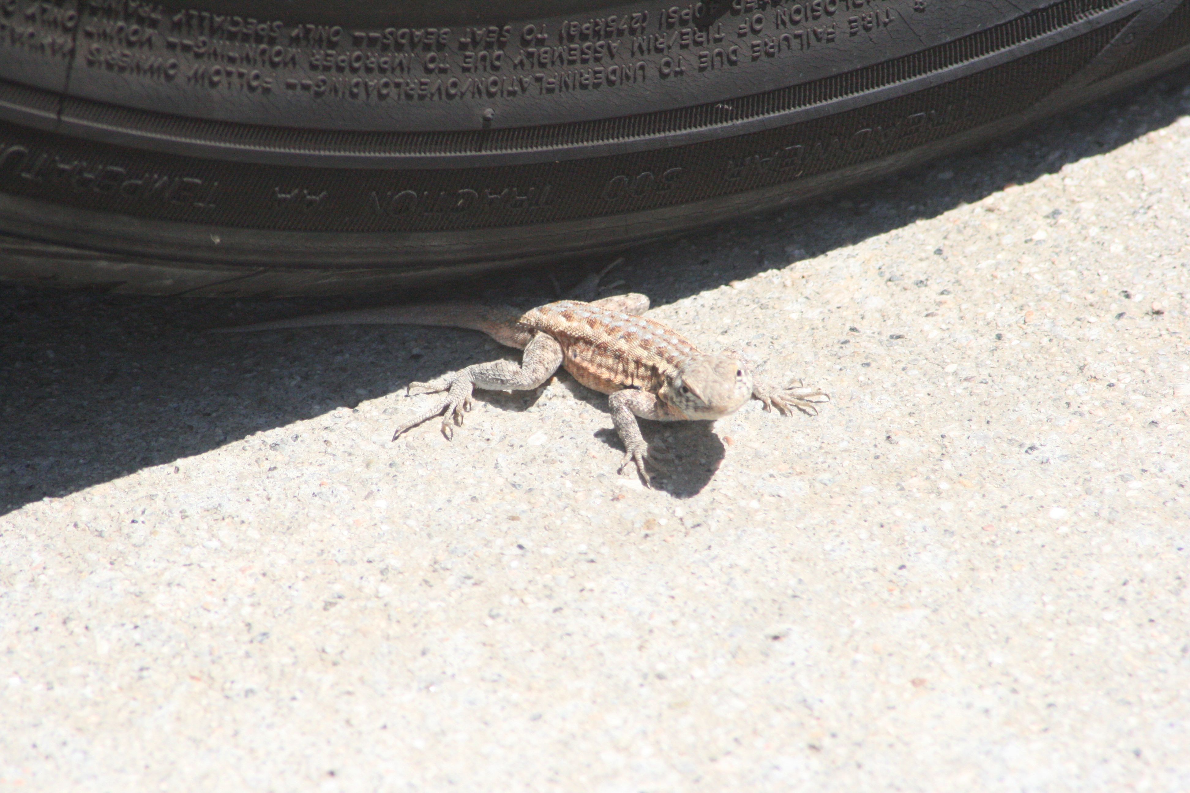 In looking back at the pictures from earlier in the week, it all became clear. He’s not just missing part of his tail – he’s missing his feet and part of his legs on his left side. I didn’t see it earlier, but in the pictures from last weekend, so is the second lizard there.