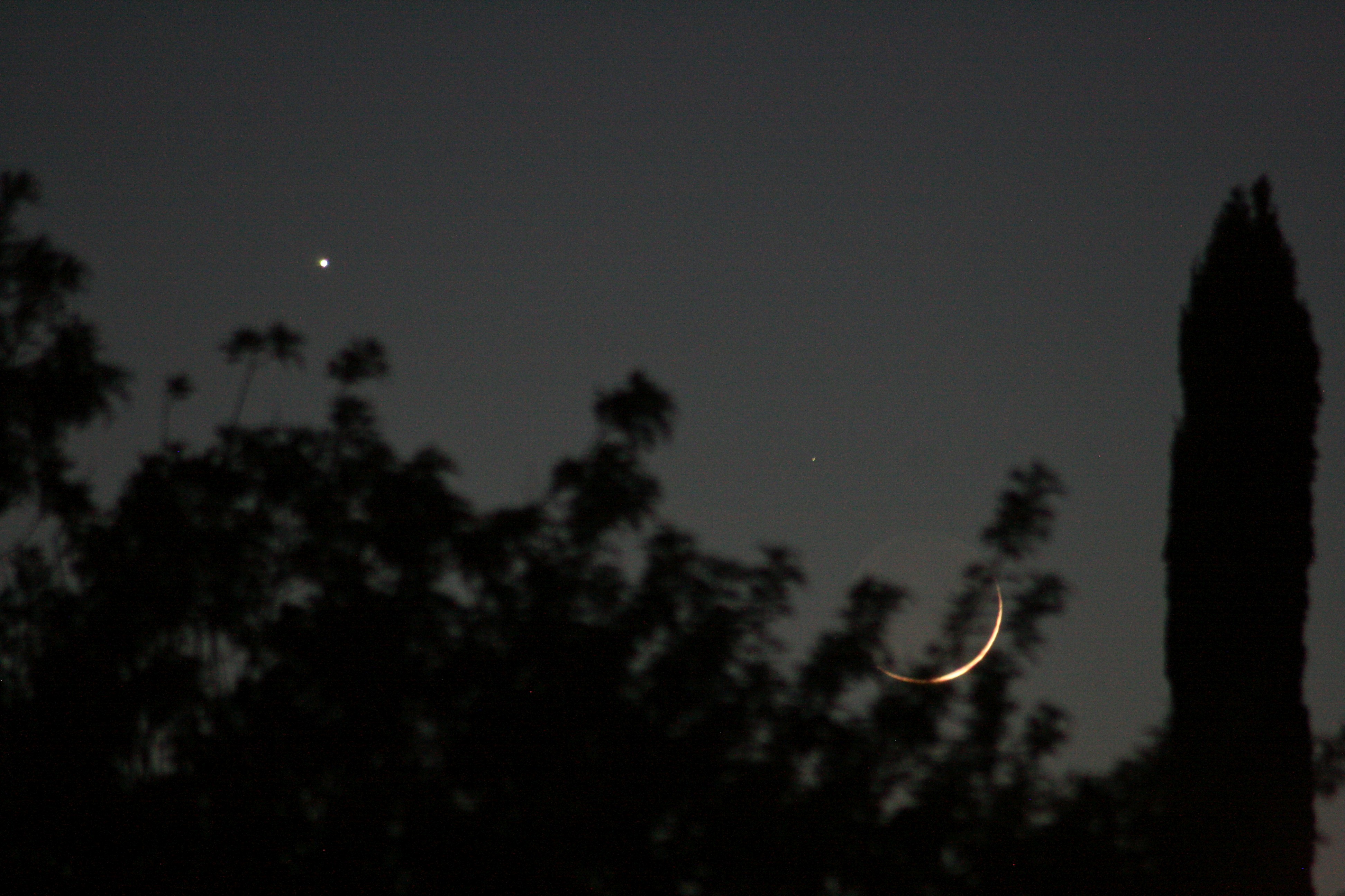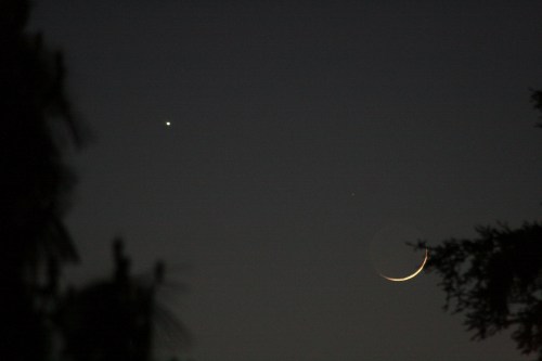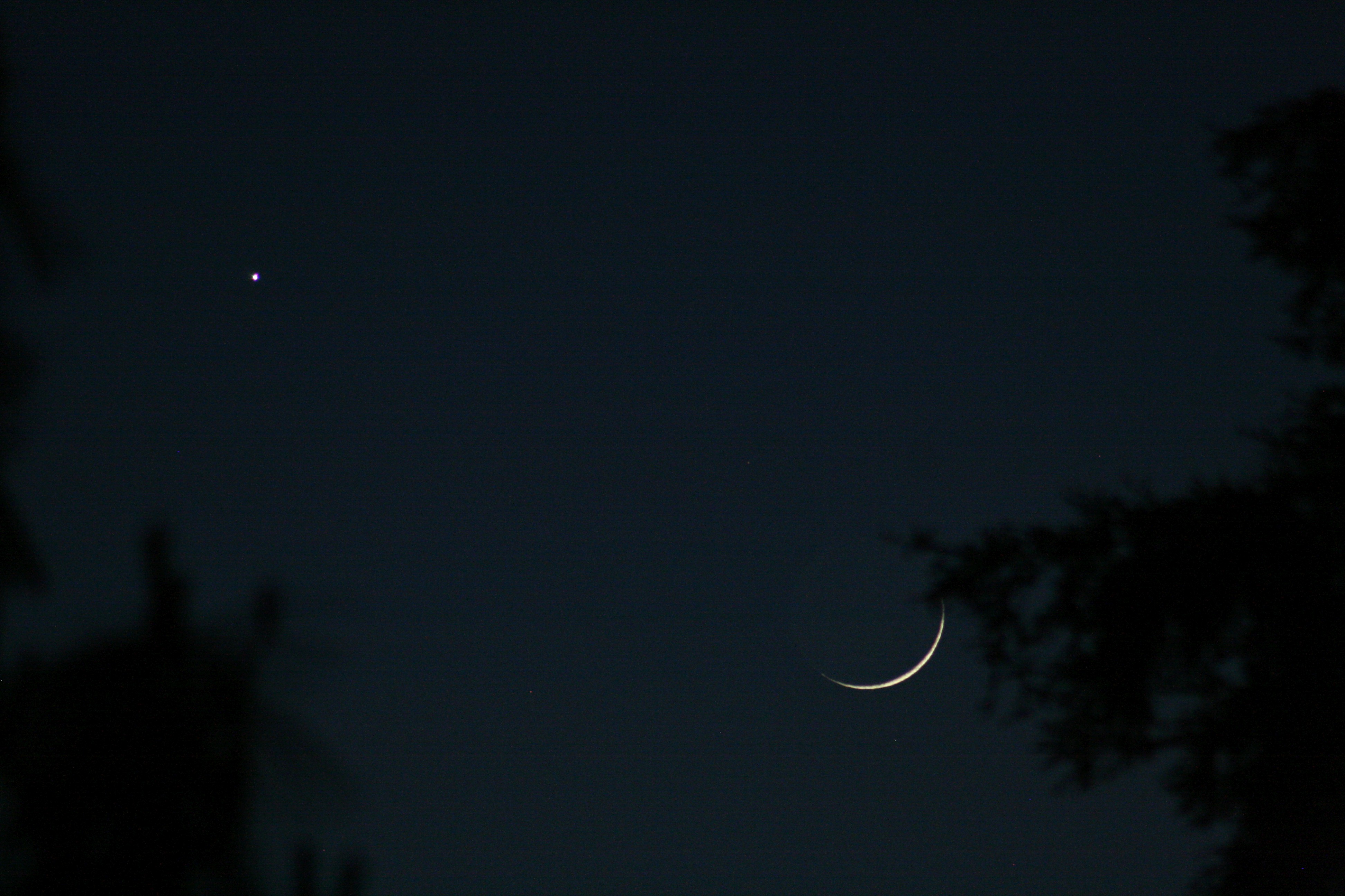 Having finished with messing around with the Sun, tonight the very thin crescent moon was threatening Venus.