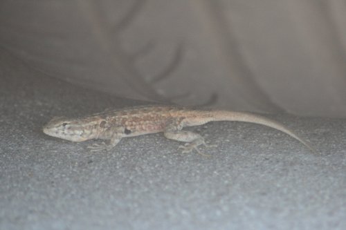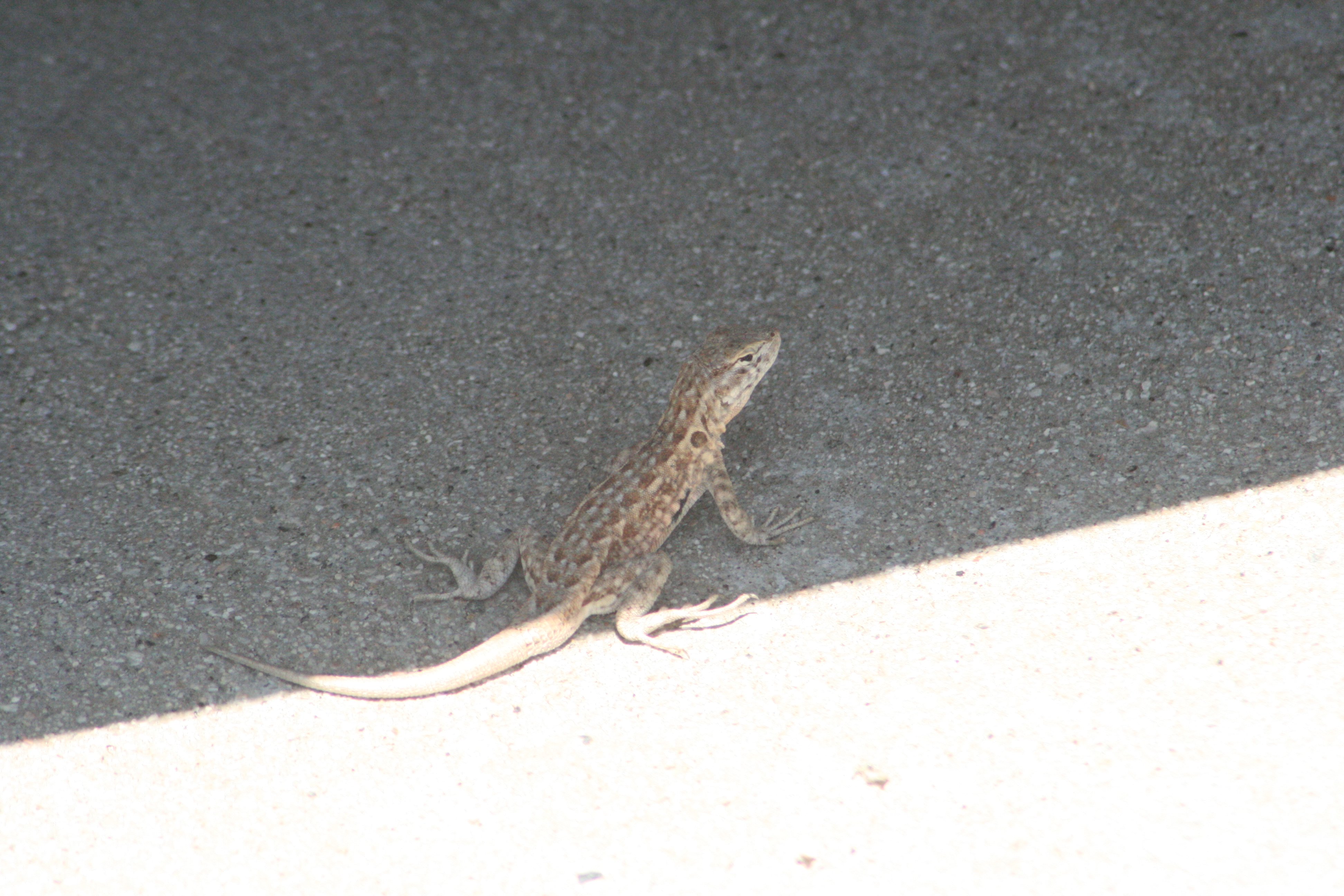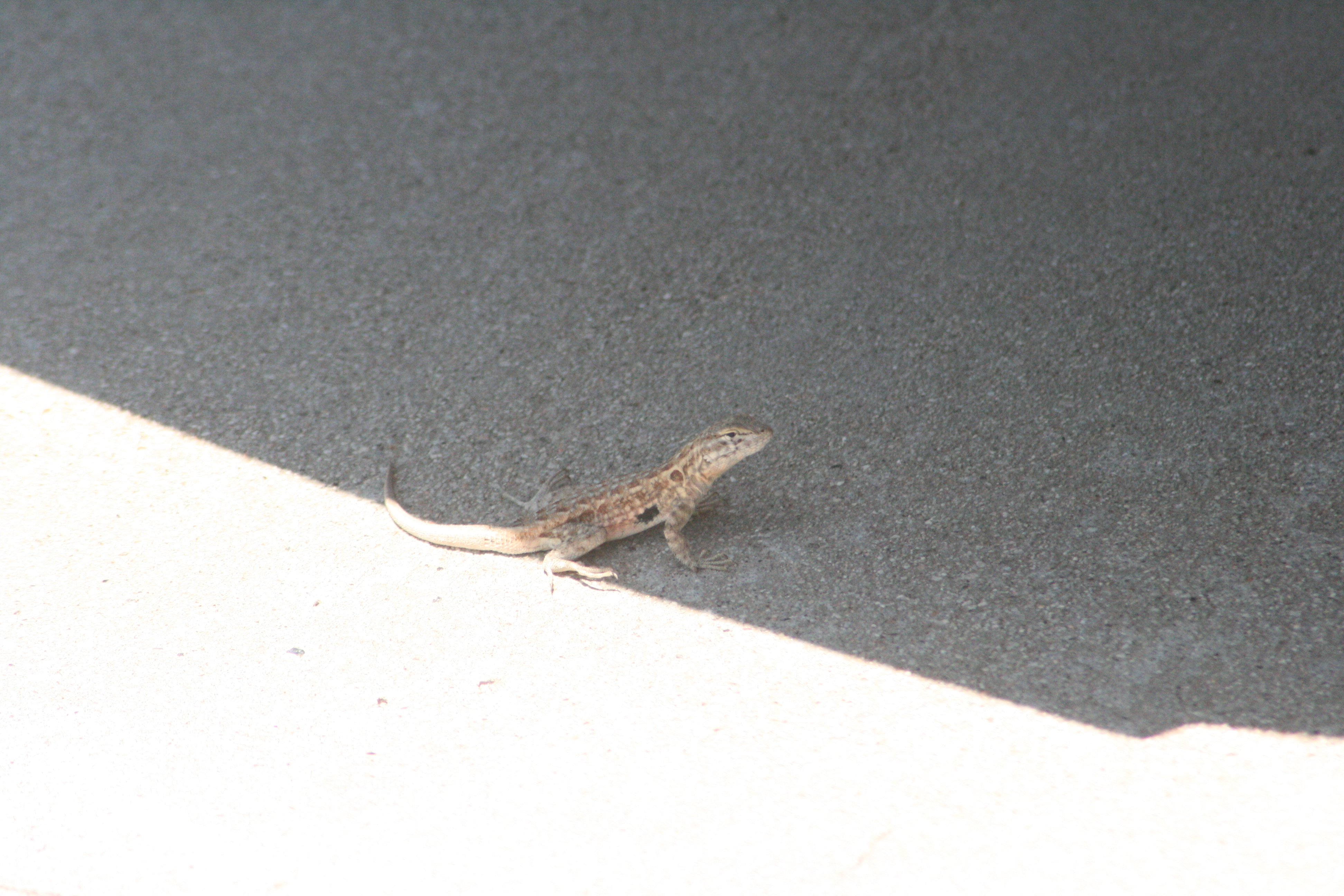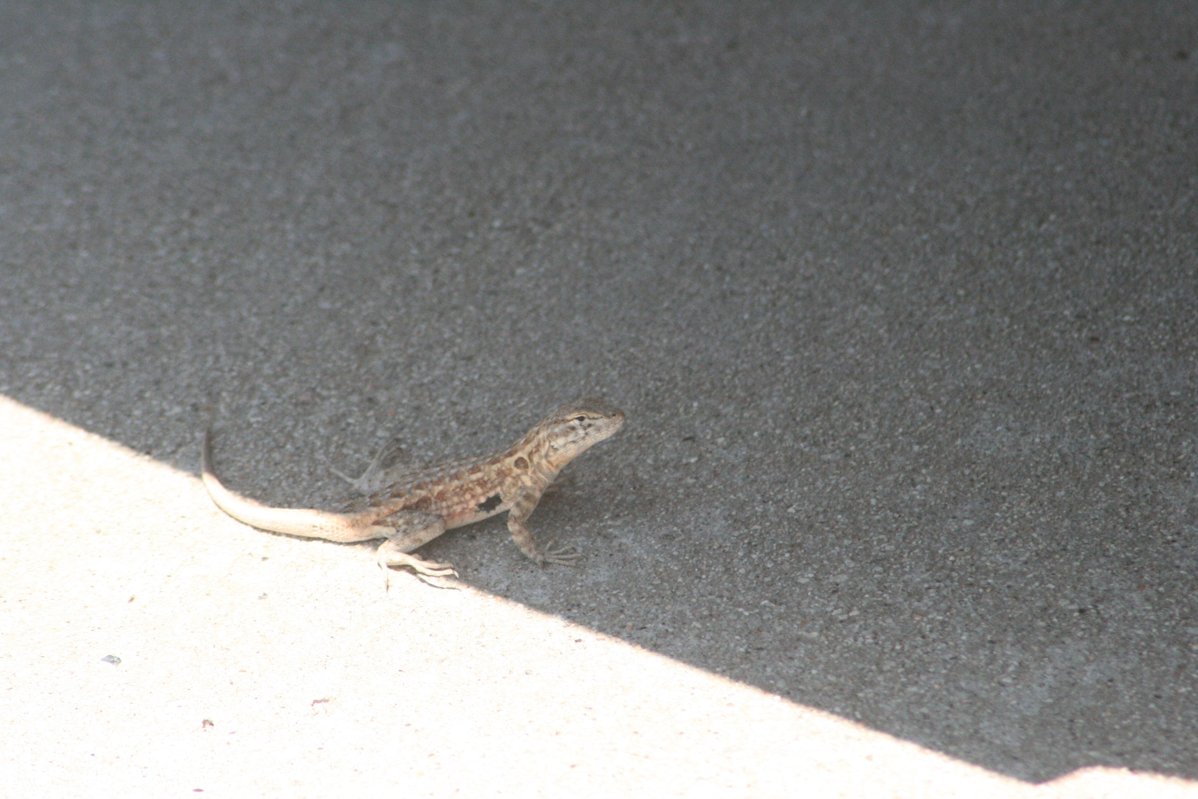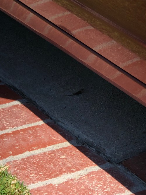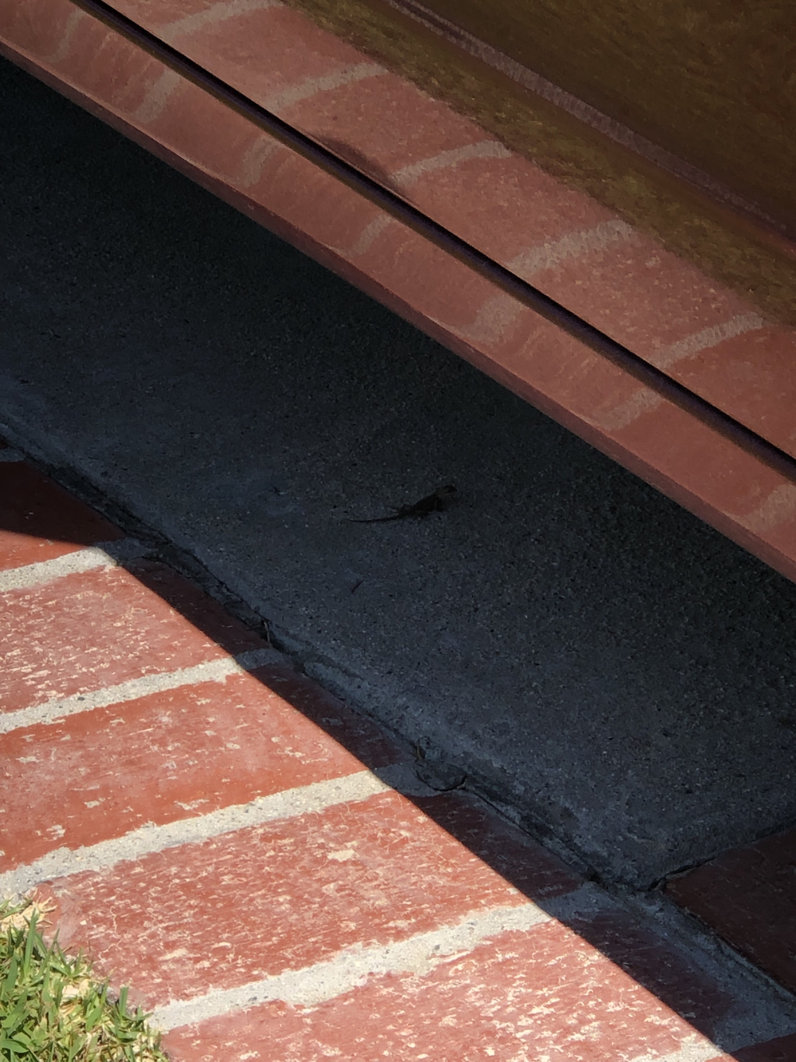 All I had was my iPhone, not the good camera with the telephoto lens, and he was deep in the shadows. But it was a brand new little lizard, probably in the sense of “very recently hatched” given his size and also in the sense of “first time I’ve seen it!” He was EXTREMELY skittish and bolted as soon as I made the smallest step toward him to get a better picture. That’s good! That’s how you stay alive long enough to get to the size of M. Badass or Dr. Lizardo!