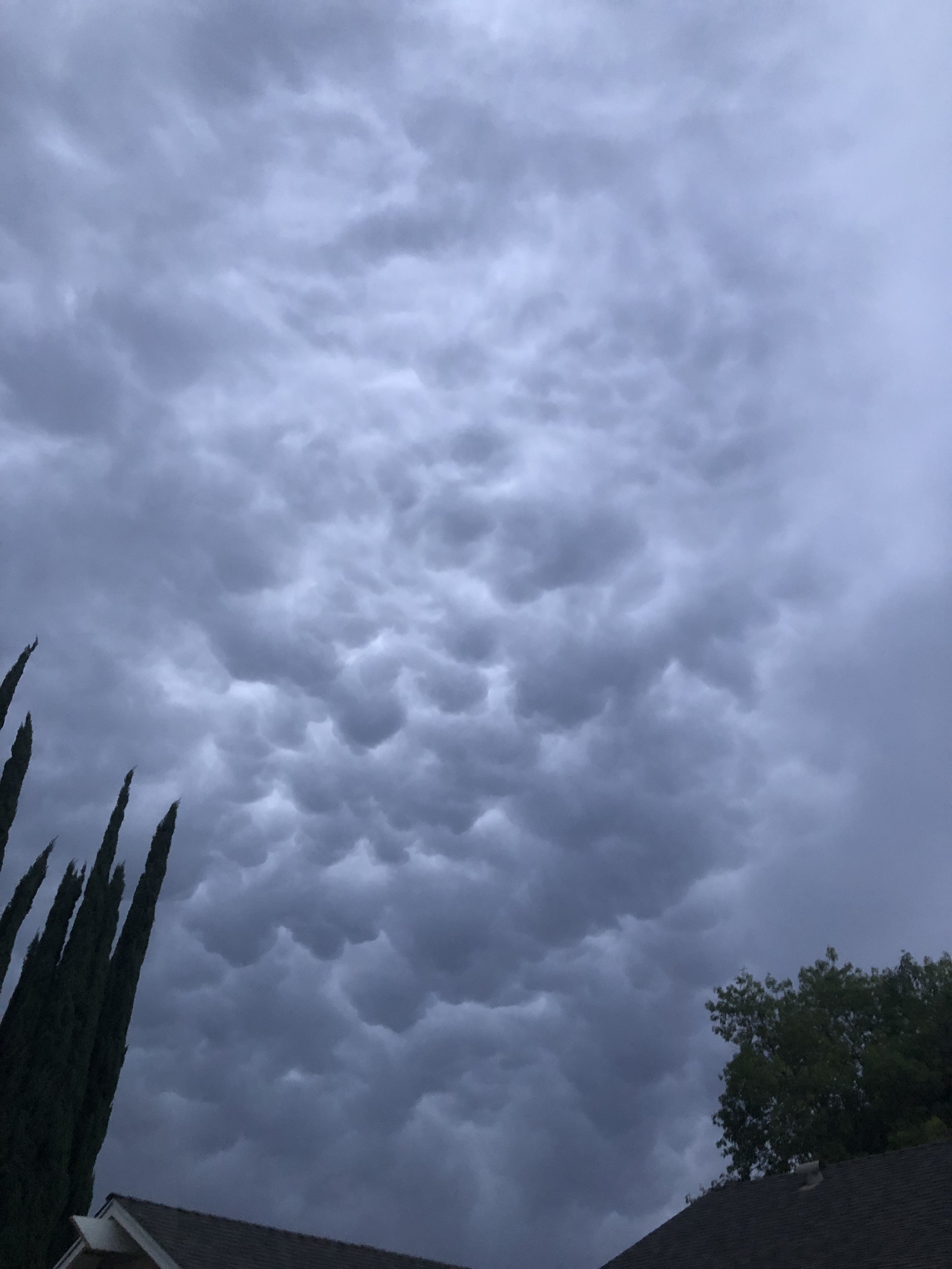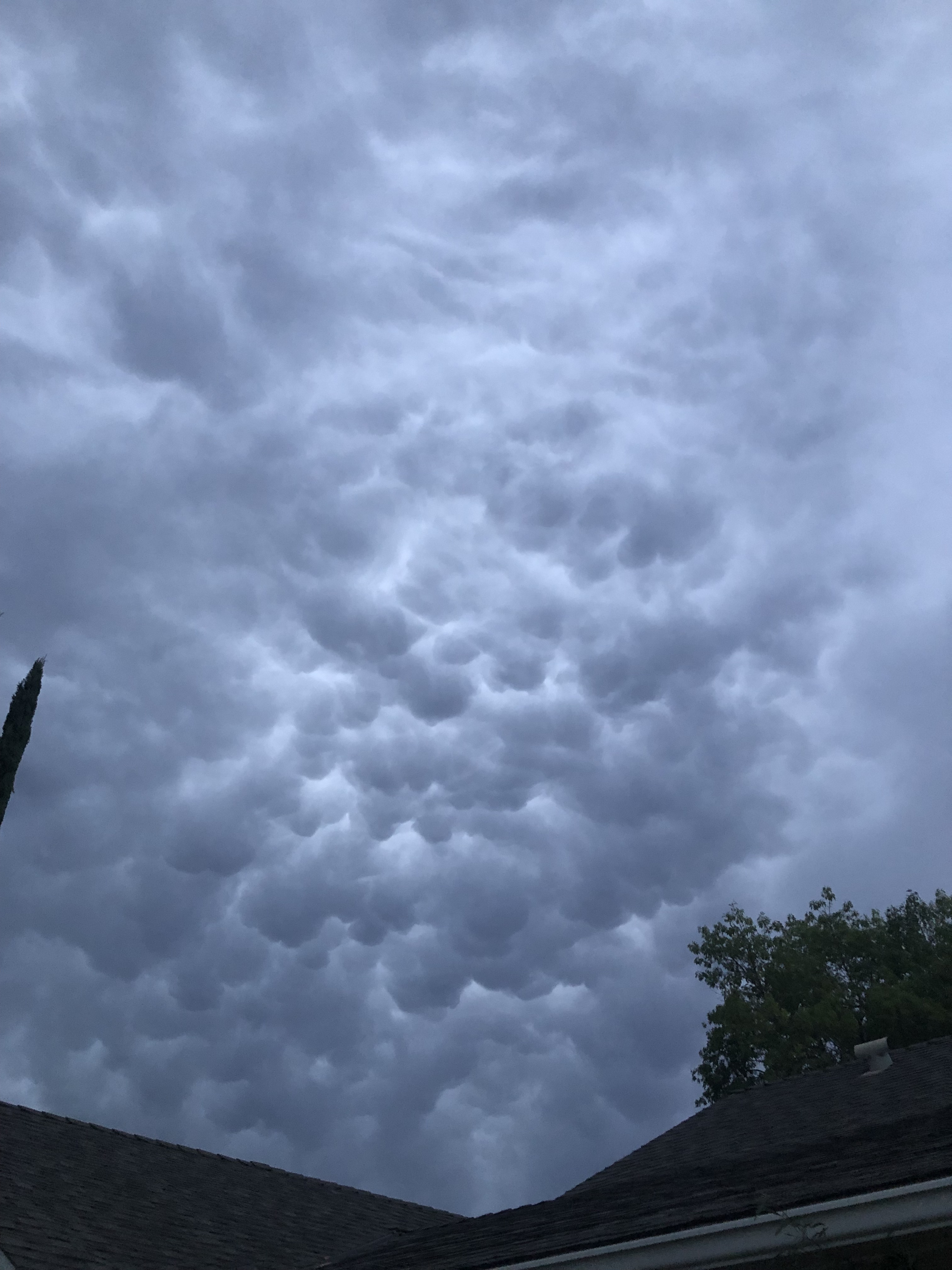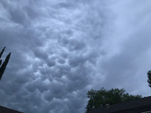 Mammatus clouds – a good sign that meteorological mischief is afoot. And maybe a good time to get inside, or at least under the porch awning, and off of the golf course or lawn.