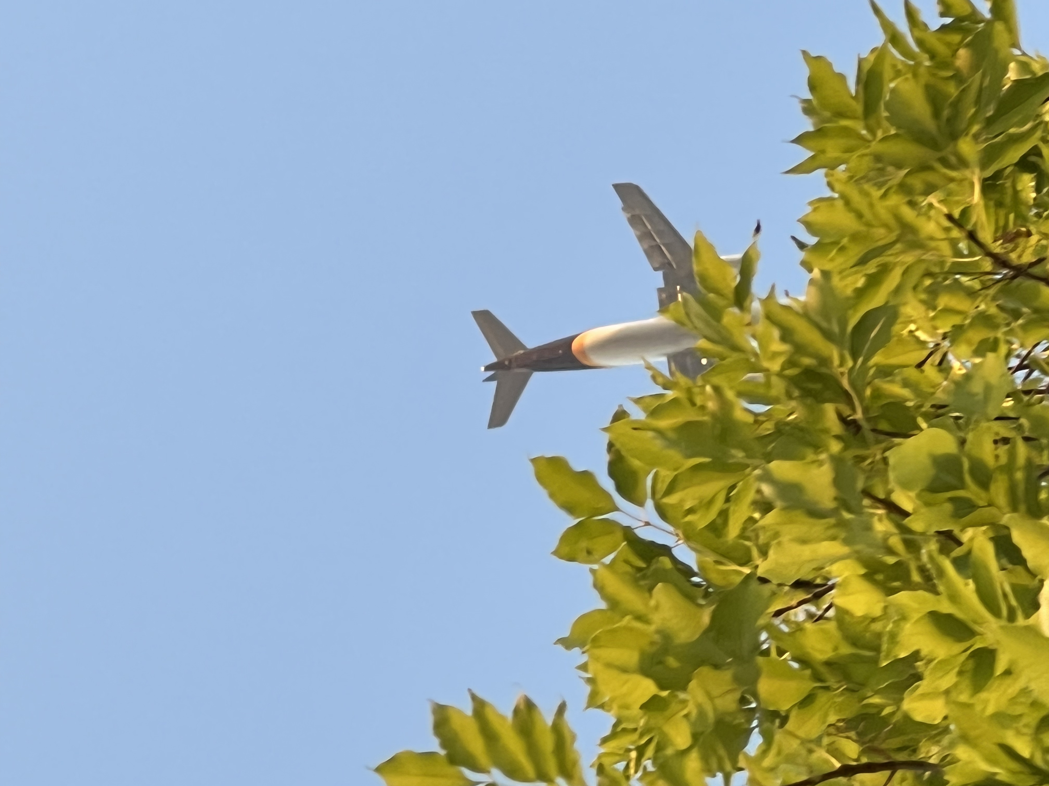 Yesterday’s UPS Flight #5514 into Burbank, pulling out of a steep left turn to line up on Runway 8, but first trying to hide from view in that big tree in the back yard!