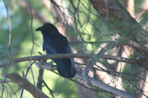 Ravens are extremely intelligent, capable of problem solving, using tools to get food, and so on. They also have shown that they can recognize and remember individual humans. (Don’t ever throw rocks or sticks at them – they won’t forget.) While I can’t recognize individual ravens (they’re all just pretty much…black?) I suspect the two that hang around here are regulars.