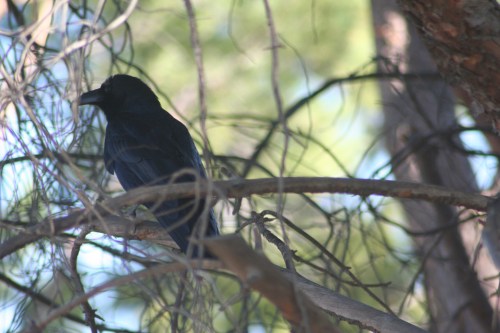 But it’s not all a nightmare. I’ve been putting out bits of “wildlife seeds” over in the far corner of the yard, making peace with the squirrels, but also hoping to entice some larger avian friends. The lighter, smaller, “songbird” feed goes out near the house, but I’ve seen the ravens down in the yard at least once.