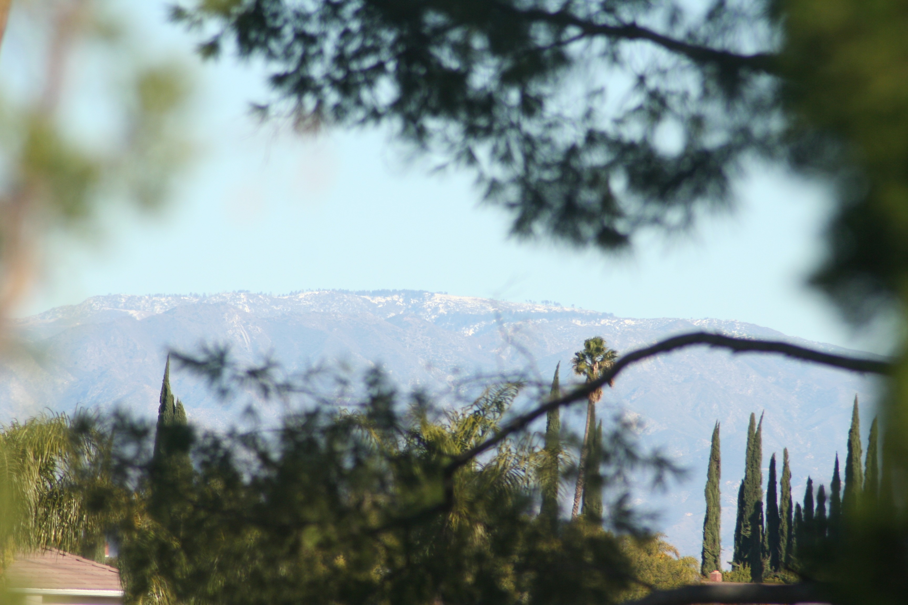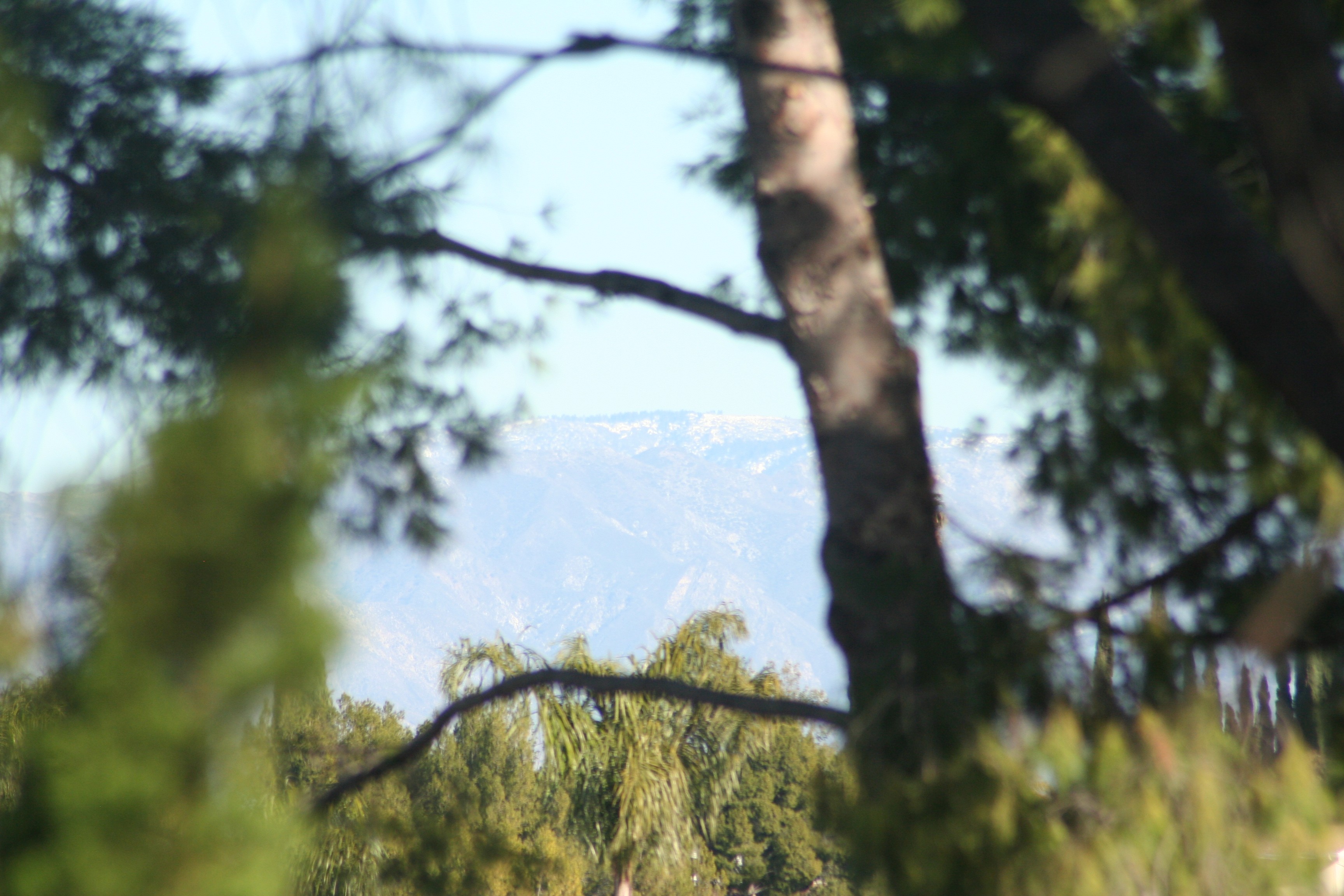 However, after last week’s storms, when a fair amount of snow got dropped down to about 3,000′ there are plenty of places to see snow-capped mountains off in the distance. I just didn’t know that our yard was one of those places.