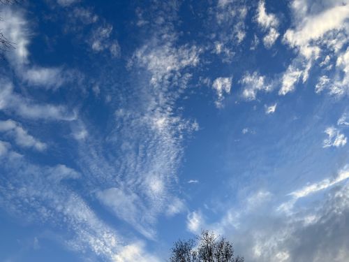 Mostly today I saw layers. Some low, dark clouds, some puffy white stuff at about 5,000′, and some thin, icy streaks at about 15,000′.