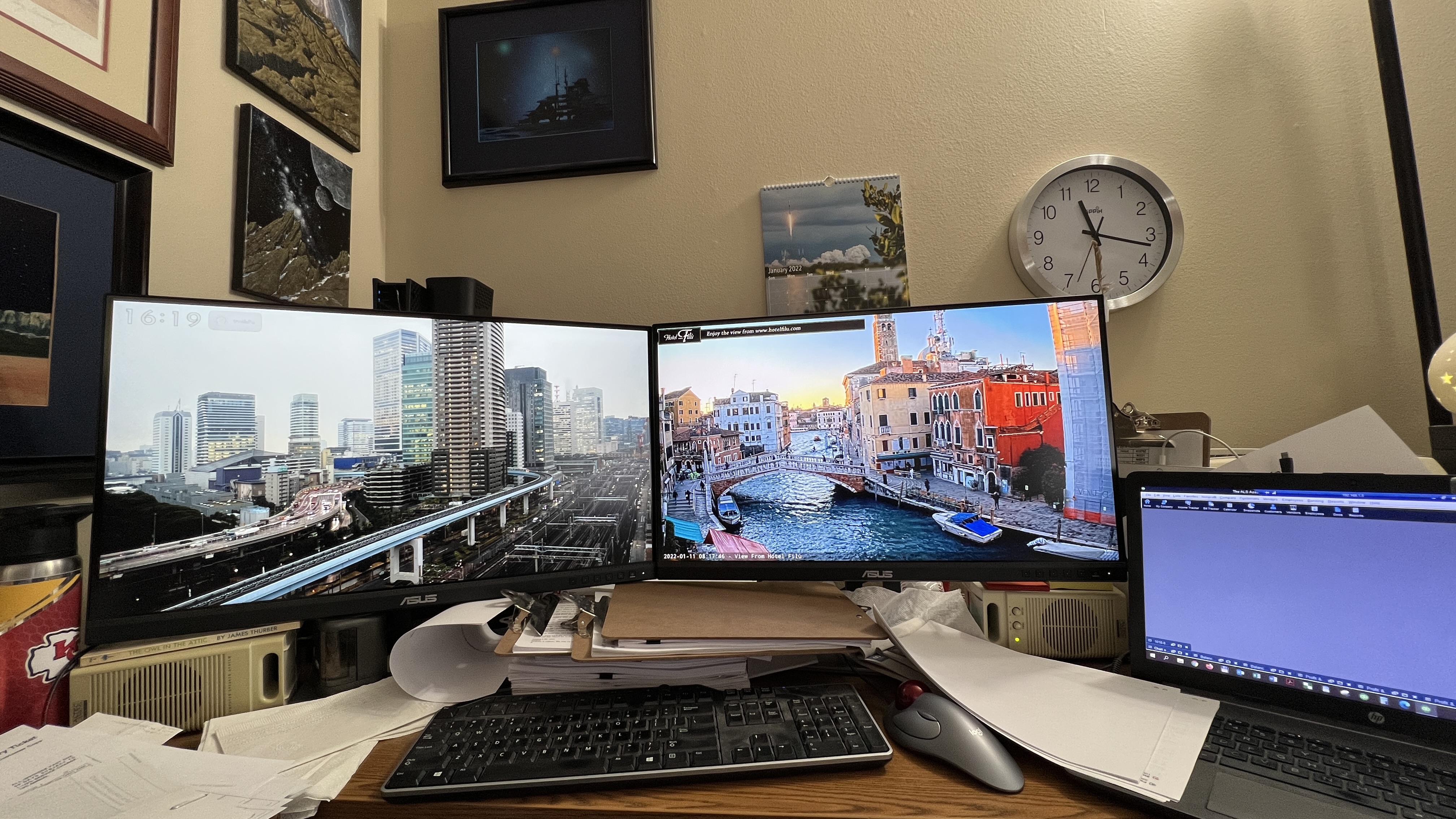 But if you have to make your own silver lining (and it doesn’t look like the cavalry is coming over the hill to do it for me any time soon) you can do worse than setting up the monitors on your secondary computer with this view.
