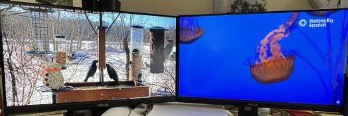 Earlier in January I posted a picture of a portion of my home office desktop, with two monitors showing live views of Tokyo and Venice. A comment from Jemima Pett suggested also watching live webcams from nature reserves.