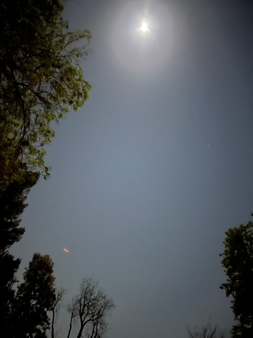 Similar to last night’s photo. 99% illuminated now, 388,422 kilometers away.