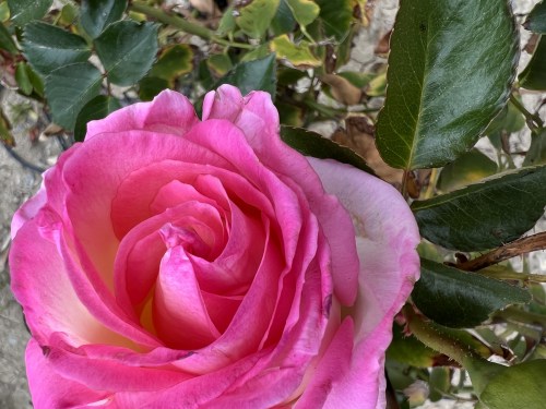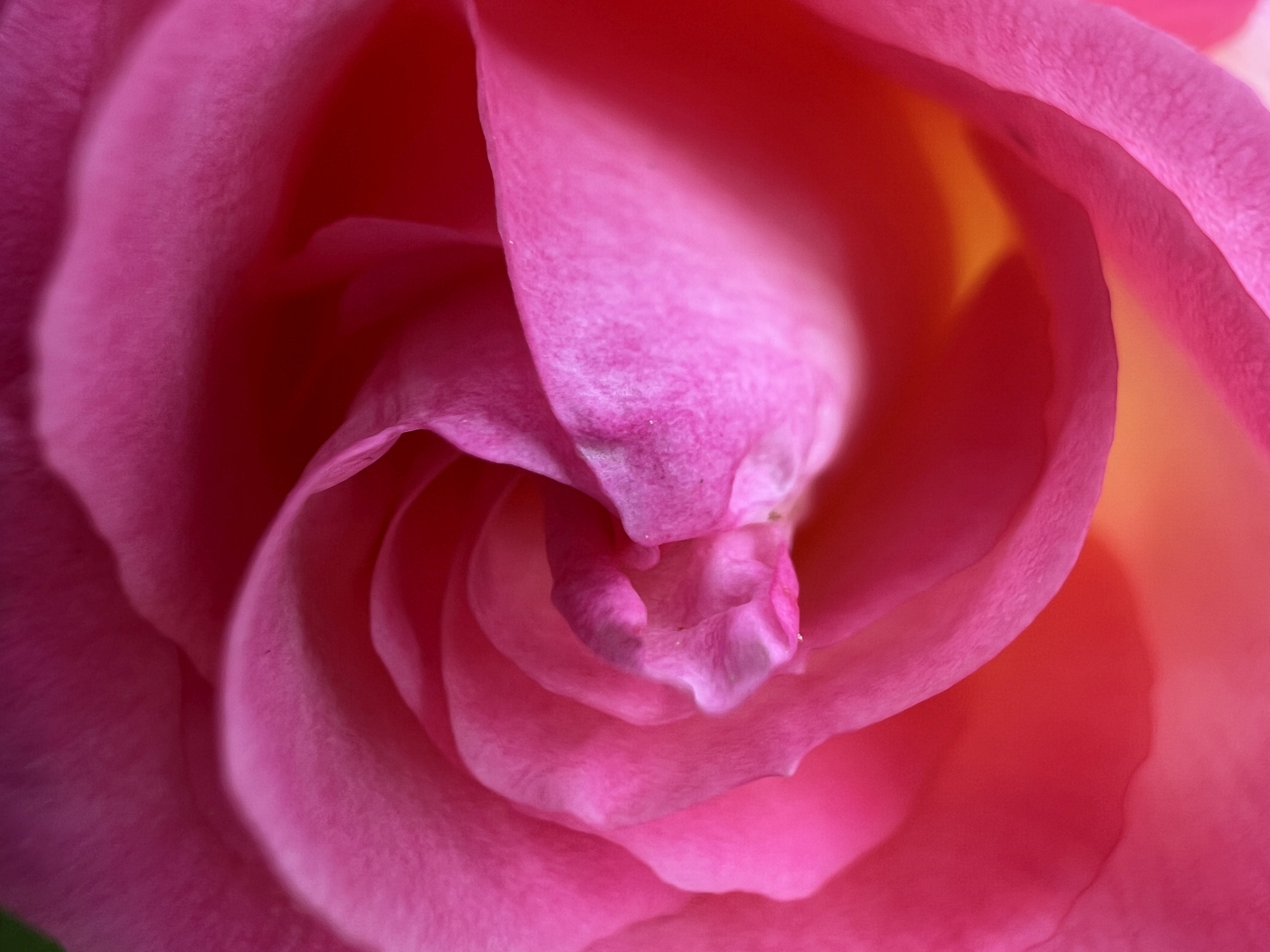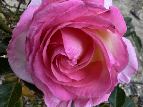 Unlike its neighbor, this pink rose has a deep, vibrant color, and is still just opening, so it’s not full of dirt, debris, and “bee stuff.”
