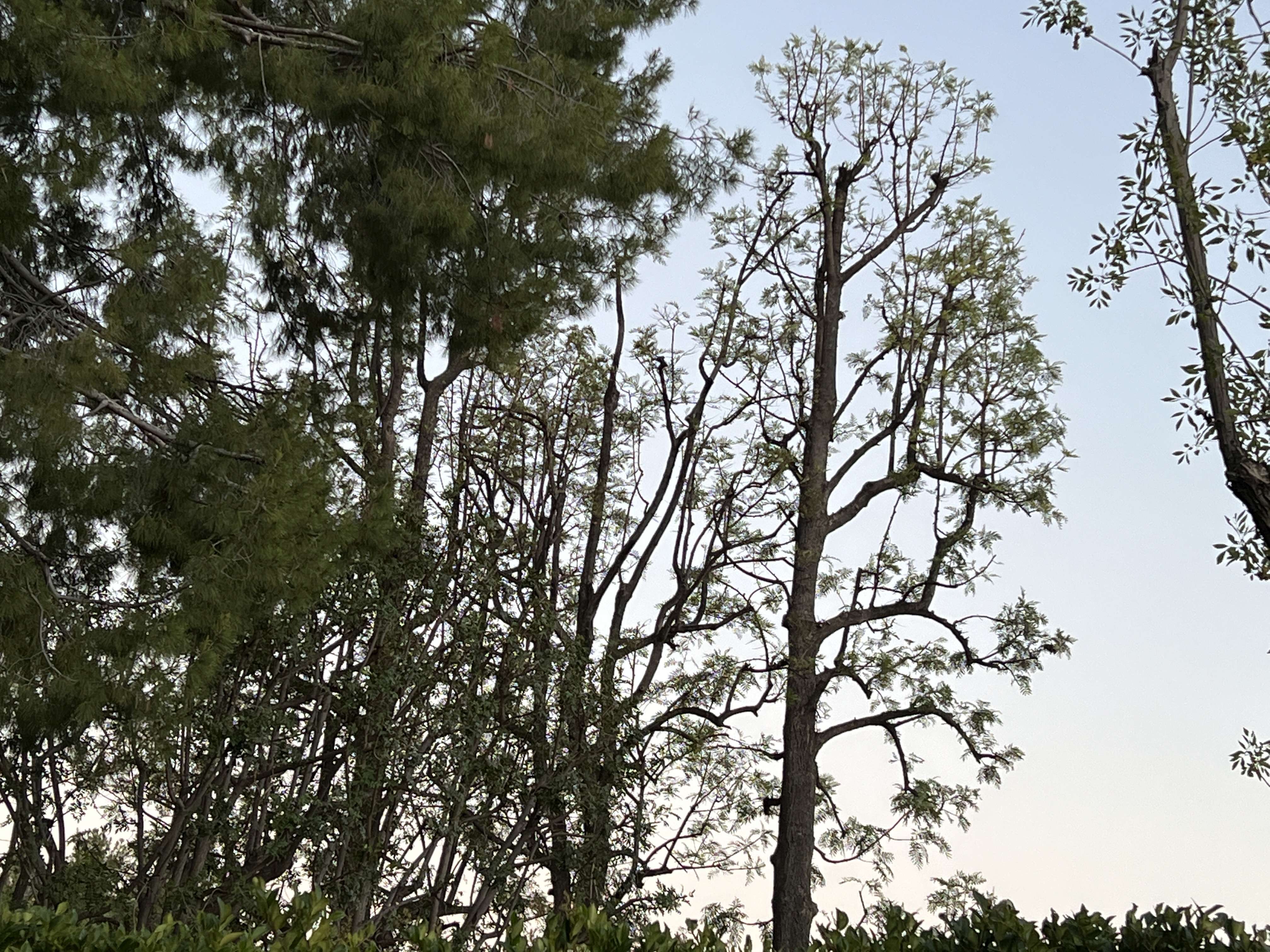 The neighbors’ gardener’s tree trimming team was in, giving quite the little buzz job to the hedges between our yards and all of the big trees.