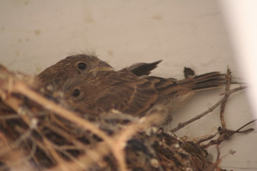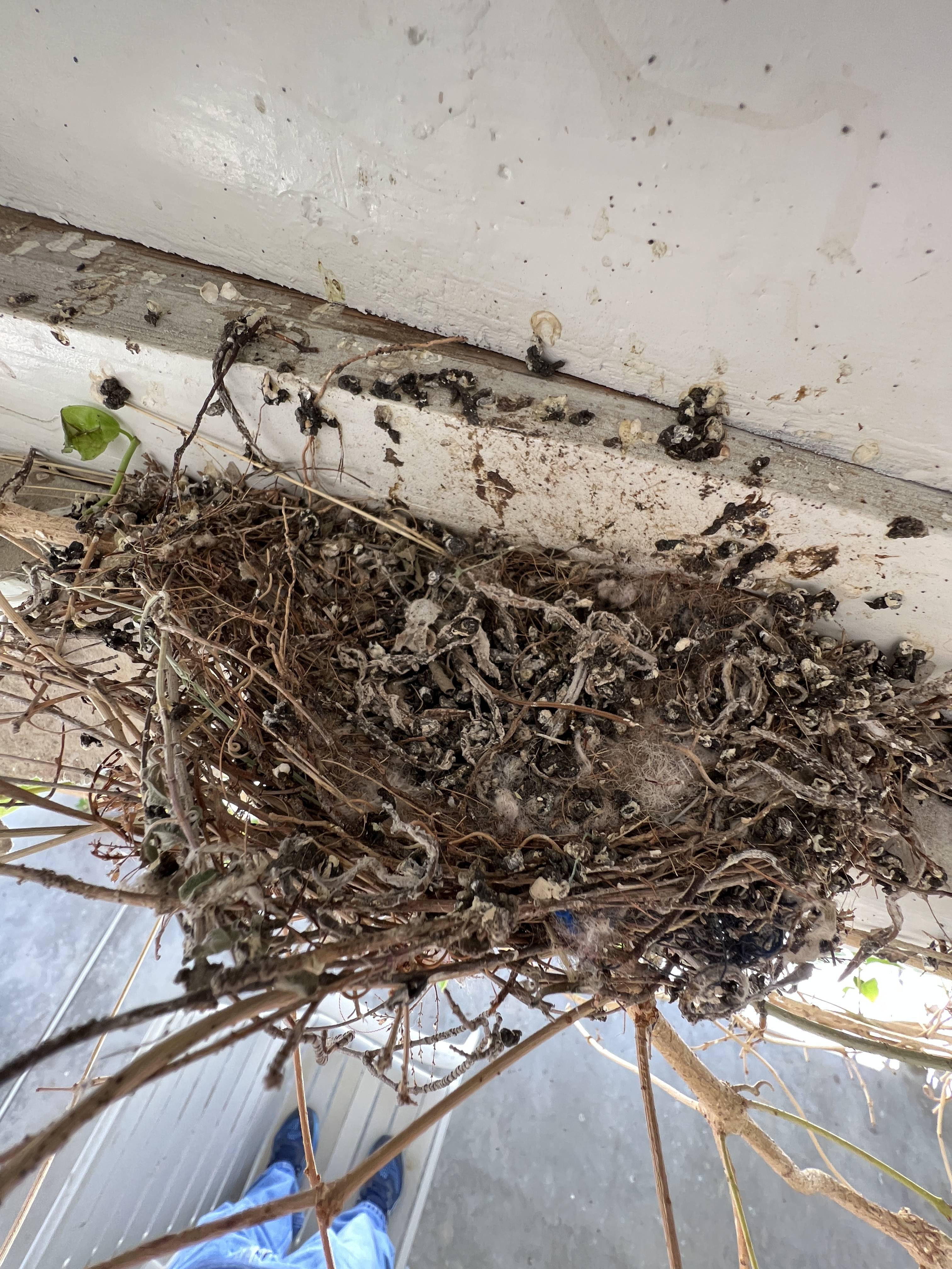There’s another nest up on the other side of the porch that still has chicks growing and chirping, but they’re behind a speaker so I can’t really see them. One of these days it will grow quiet and I’ll know why.