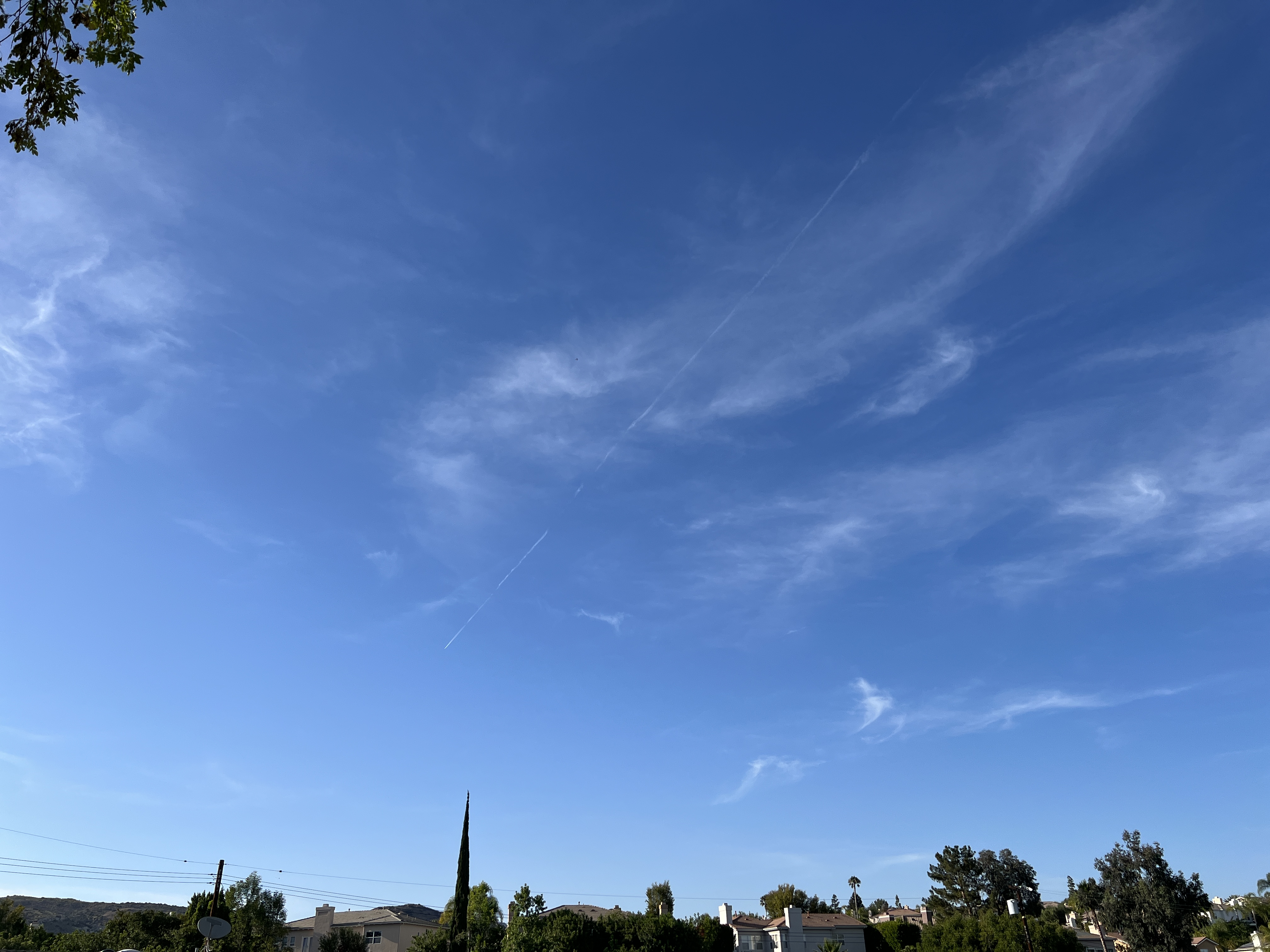 Can you see it there, 40,000 feet up, from San Diego behind us to the south, headed toward Sacramento far beyond the horizon up that way?