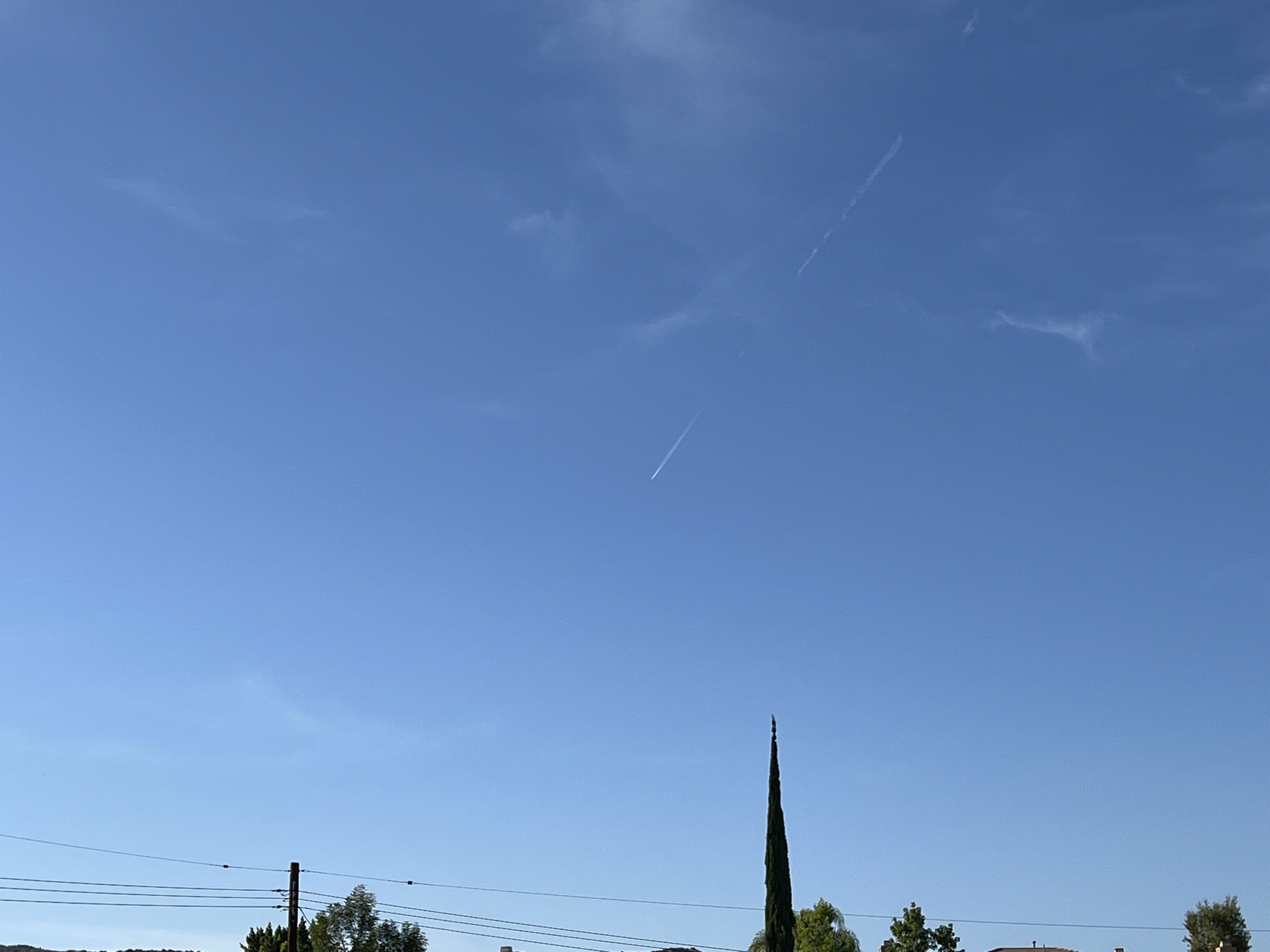 Another thin white line across the sky. Another tube full of people going somewhere I’m not.