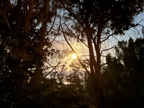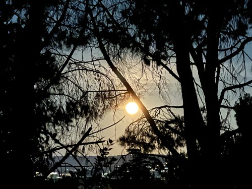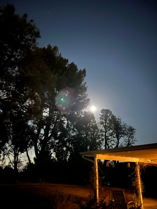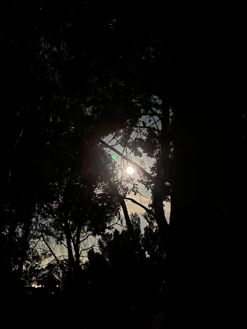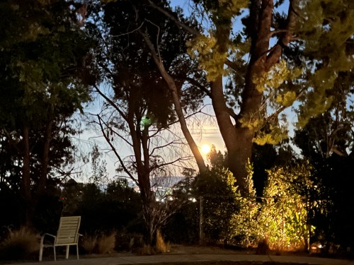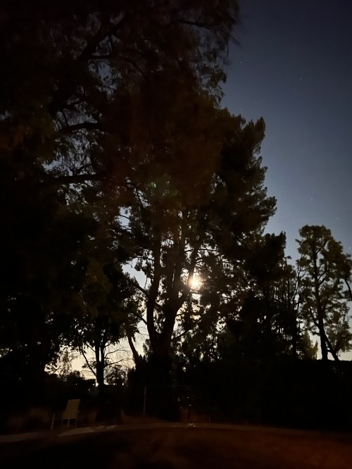 It finally cleared the trees. What amazes me is the quality of the iPhone image – look at the top, just to the right of the trees and you can see the stars at the “head” of Scorpius, even in the bright moonlight.