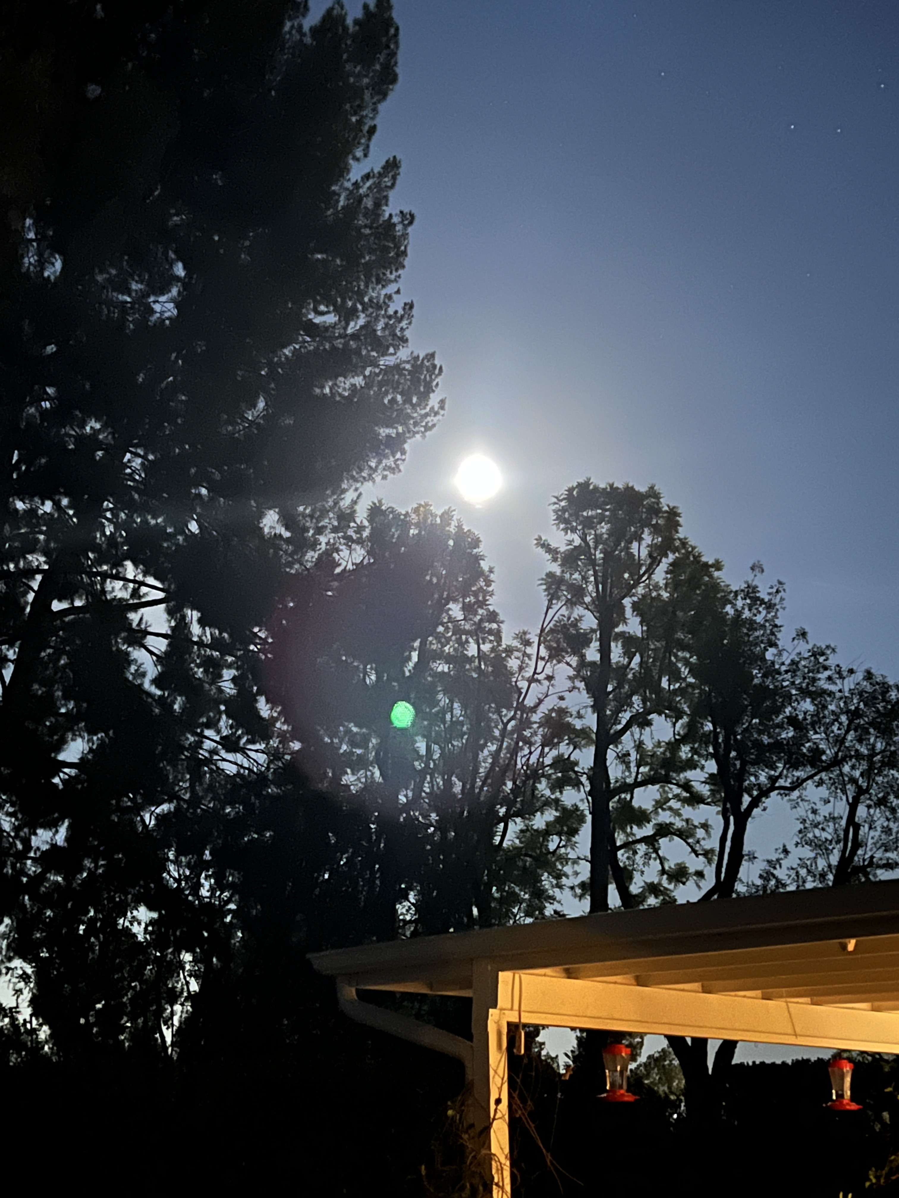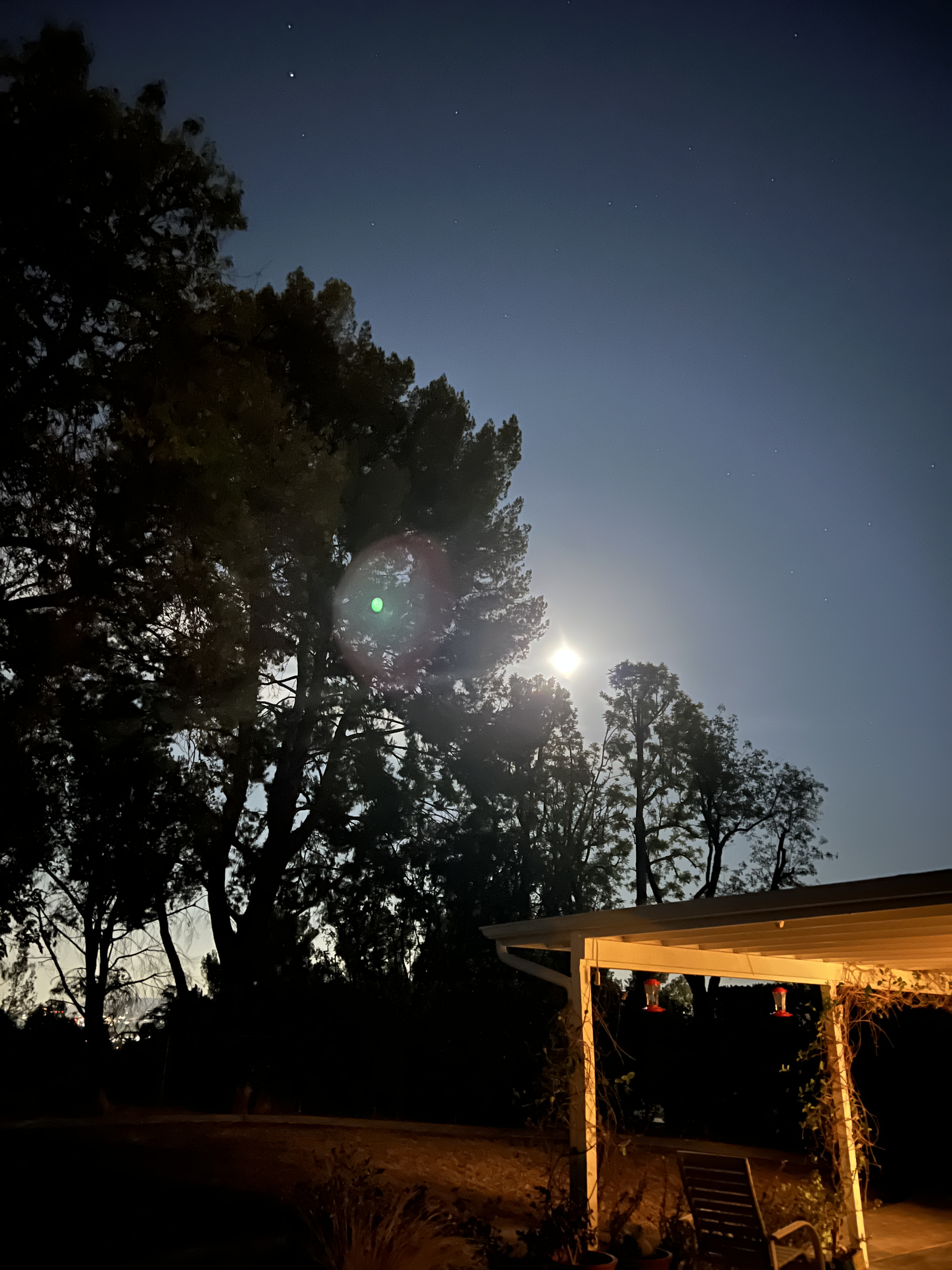 It finally cleared the trees. What amazes me is the quality of the iPhone image – look at the top, just to the right of the trees and you can see the stars at the “head” of Scorpius, even in the bright moonlight.