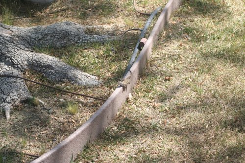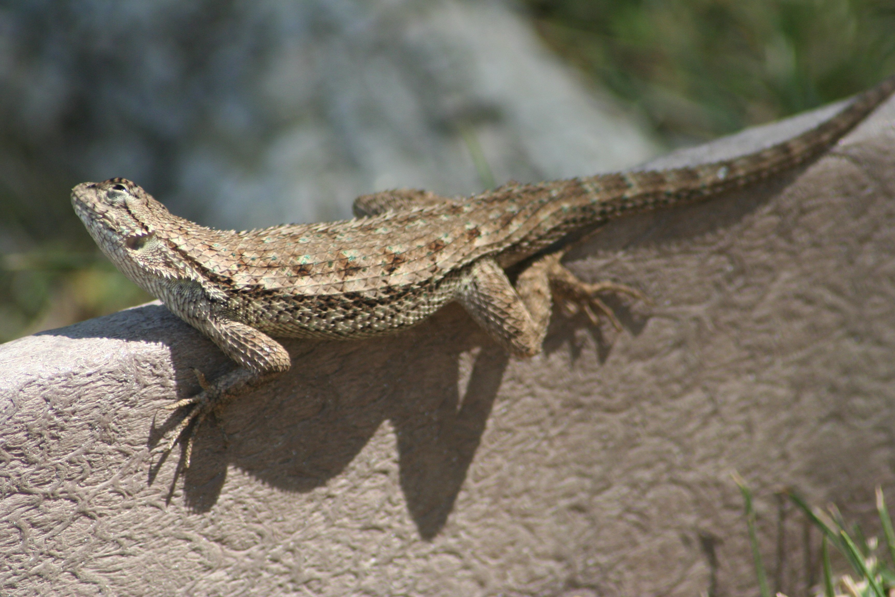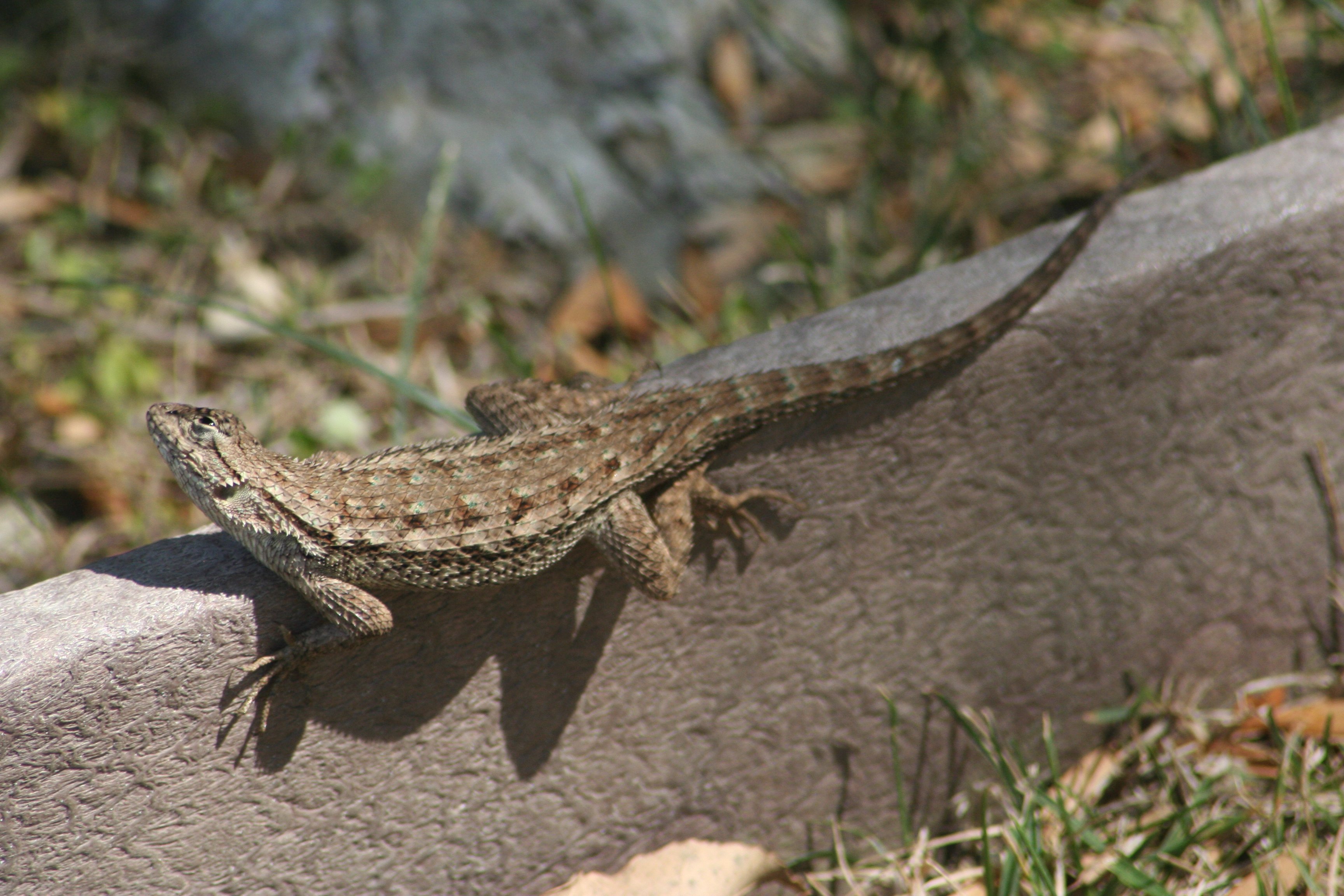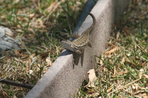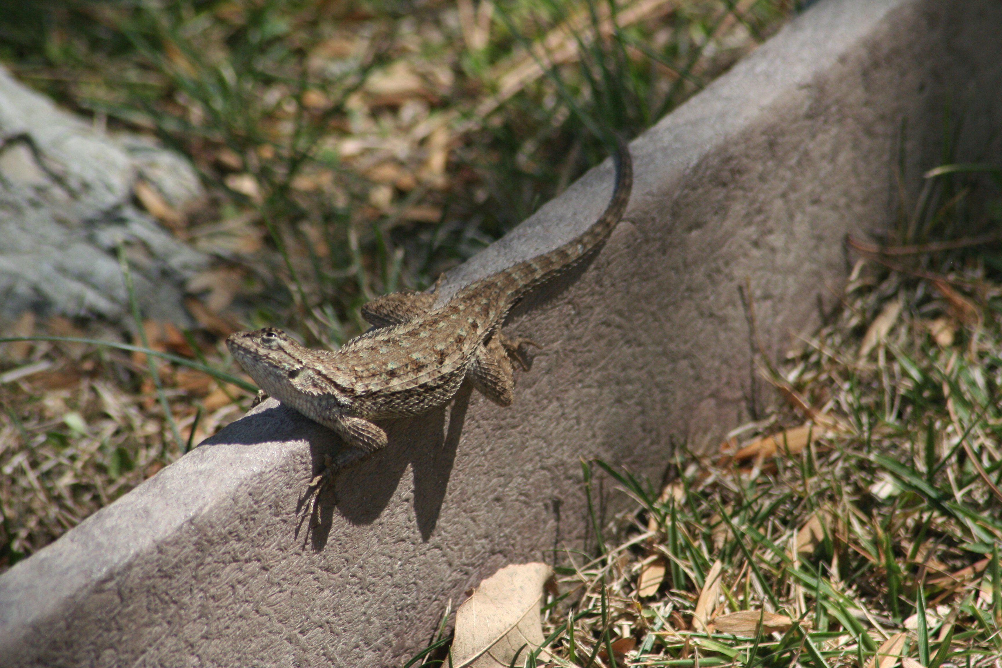 He loves being on this bit of wooden trim or edging. It’s got enough sun to keep him warm, but when it’s really hot it’s also got some shade.