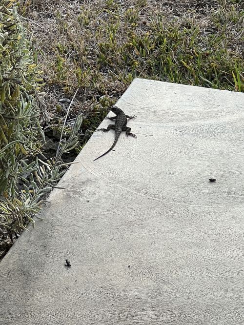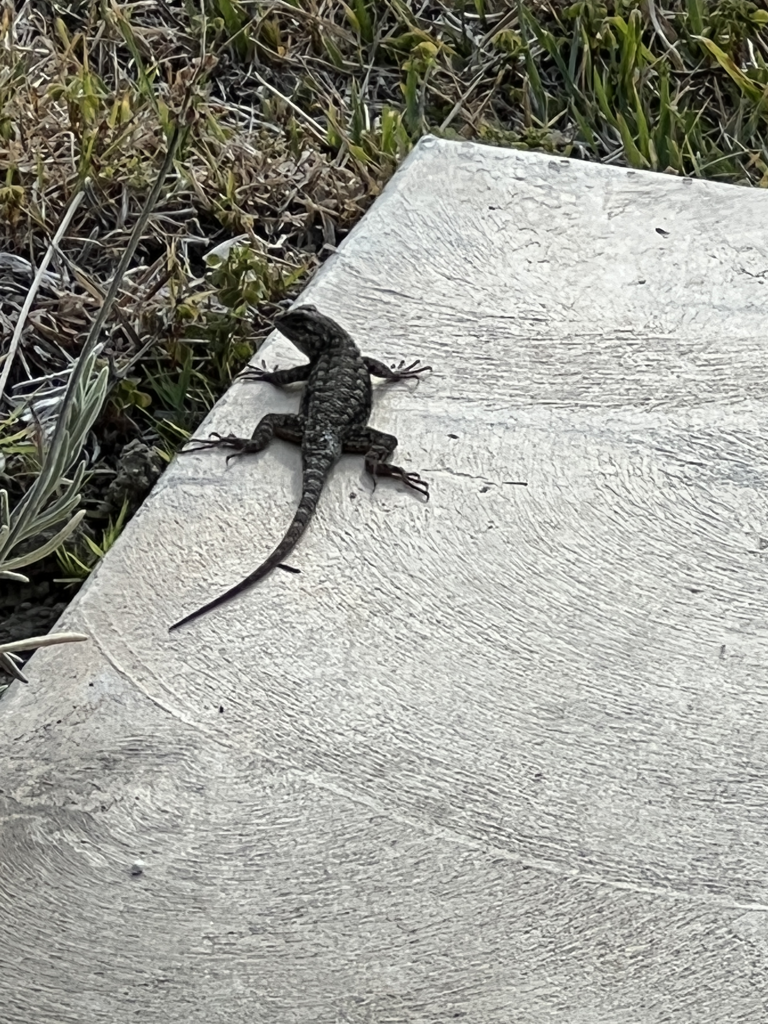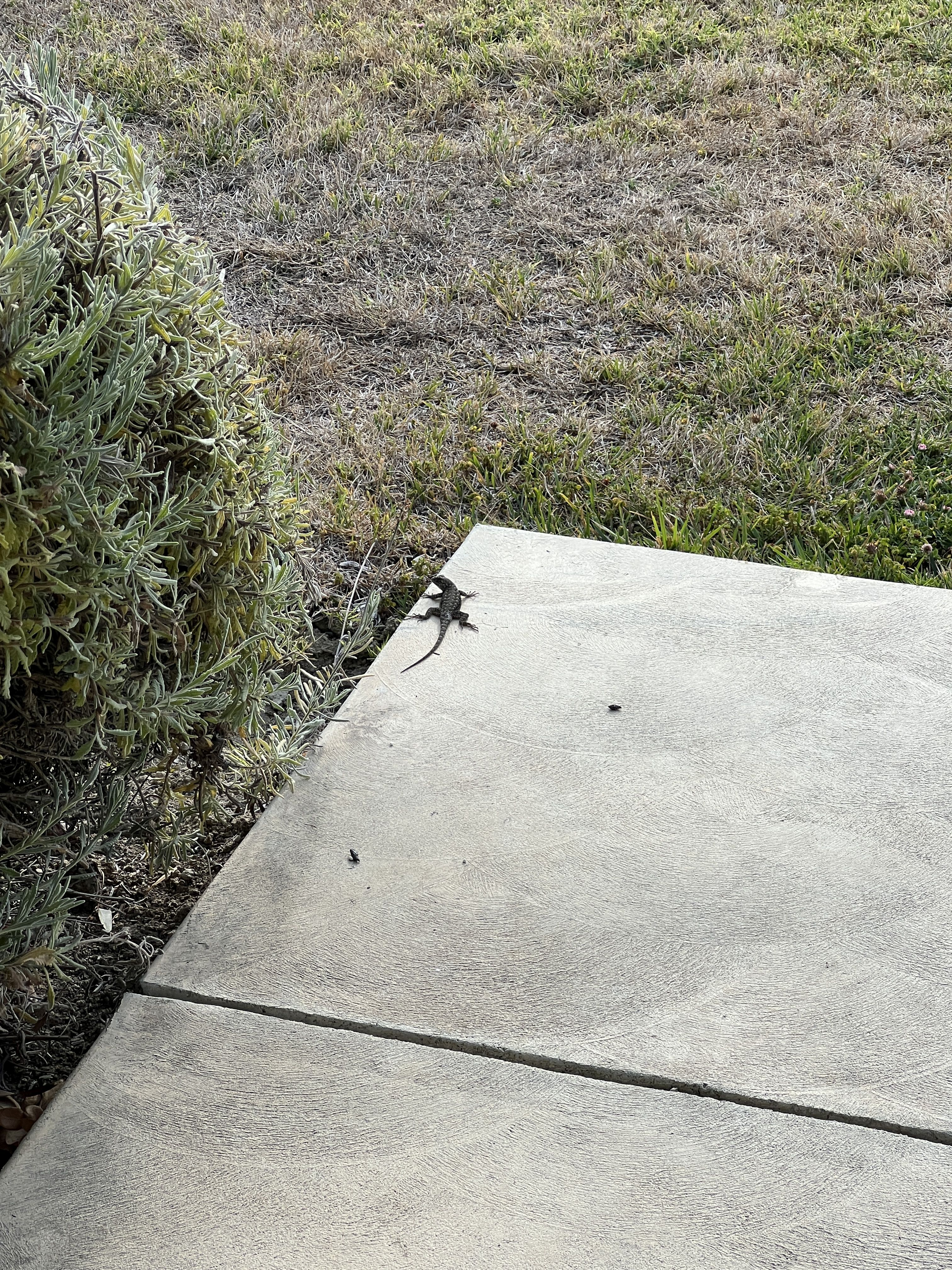 And while that sucks for us, it’s a feast for the fence lizards! So let him sploot out there on the porch, I won’t bother him. Let him eat his fill of ants any day.