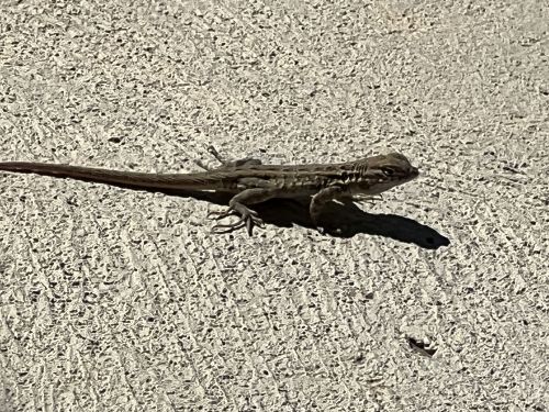 Even when I knelt down to get a better shot and wasn’t more than two or three feet away he wasn’t budging. He had his warm spot in the sun and that was that. I thought that he might actually be deceased, but his head kept swinging back and forth to keep an eye on me. THEN he started doing those “lizard push-ups,” which I understand to be a territorial display. Okay, duly noted!