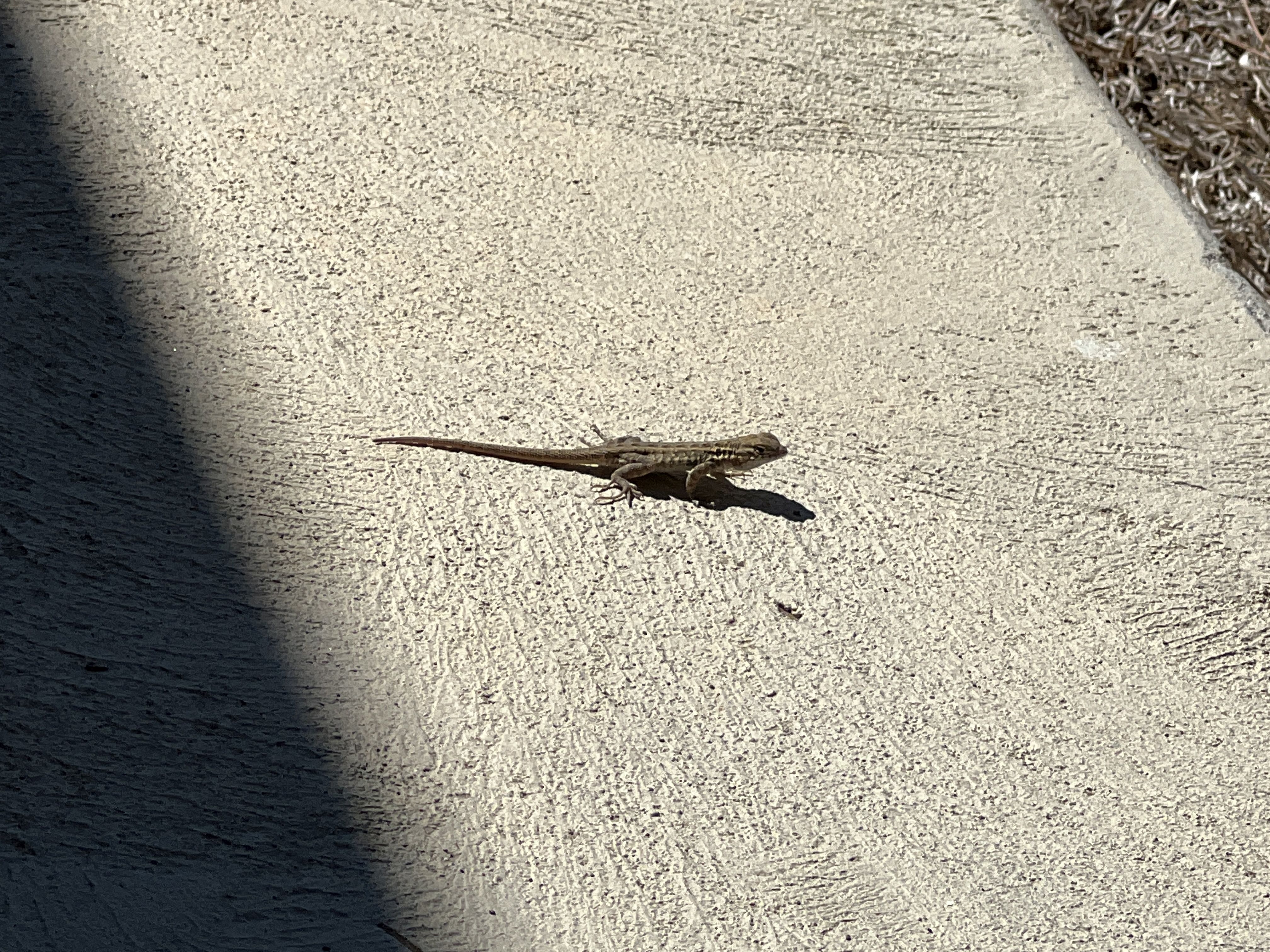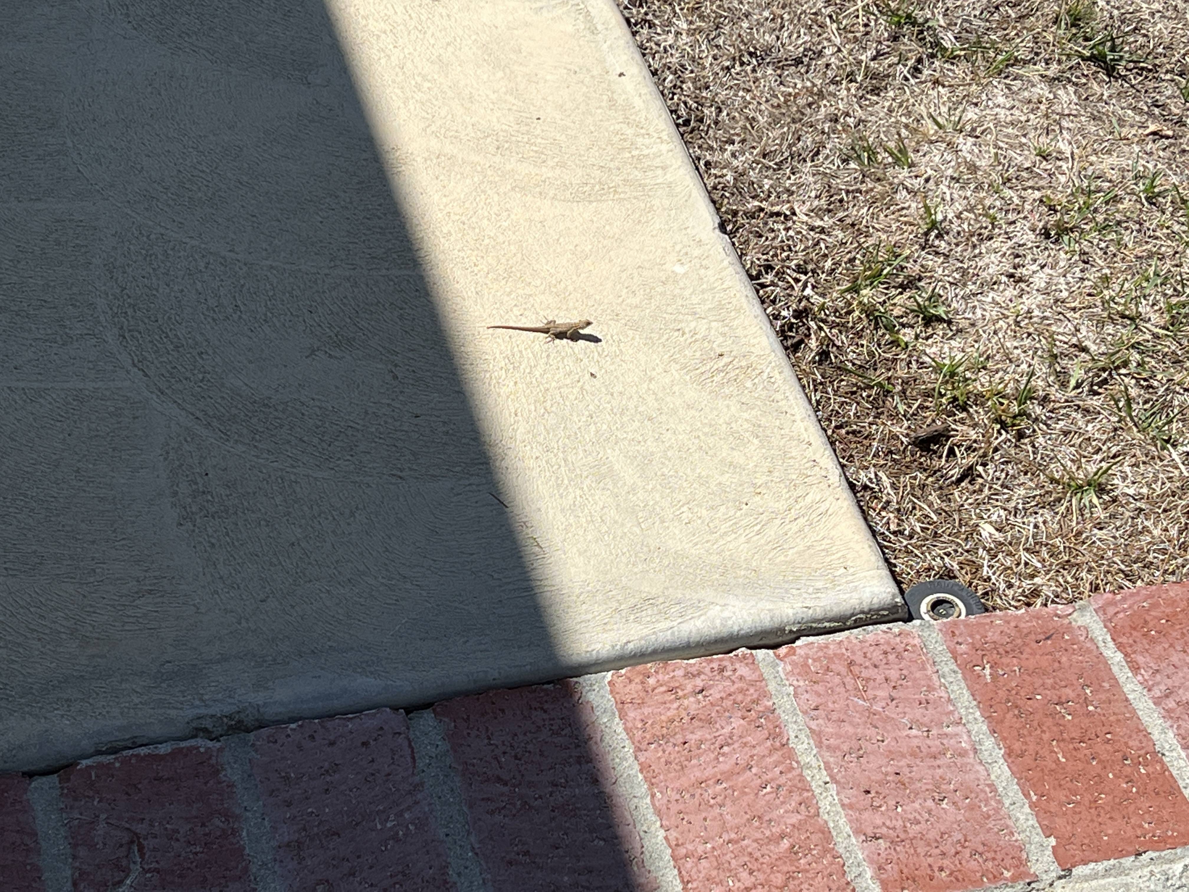 I don’t know if it’s one of the new batch of “nature’s popcorn” from the back yard. It’s the right size, but god knows there’s enough of them around so the front yard lizards and the back yard lizards might have totally different populations.