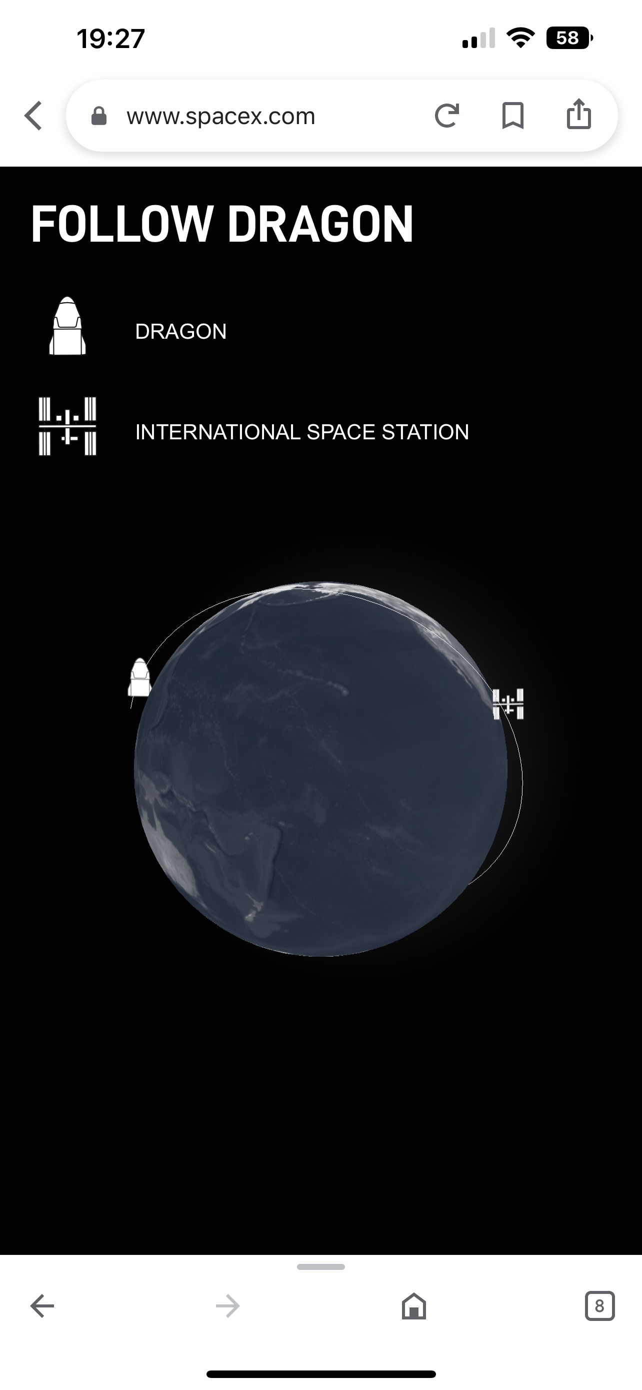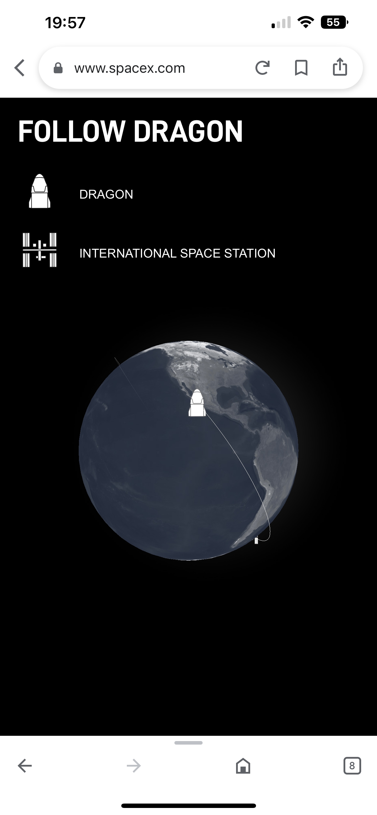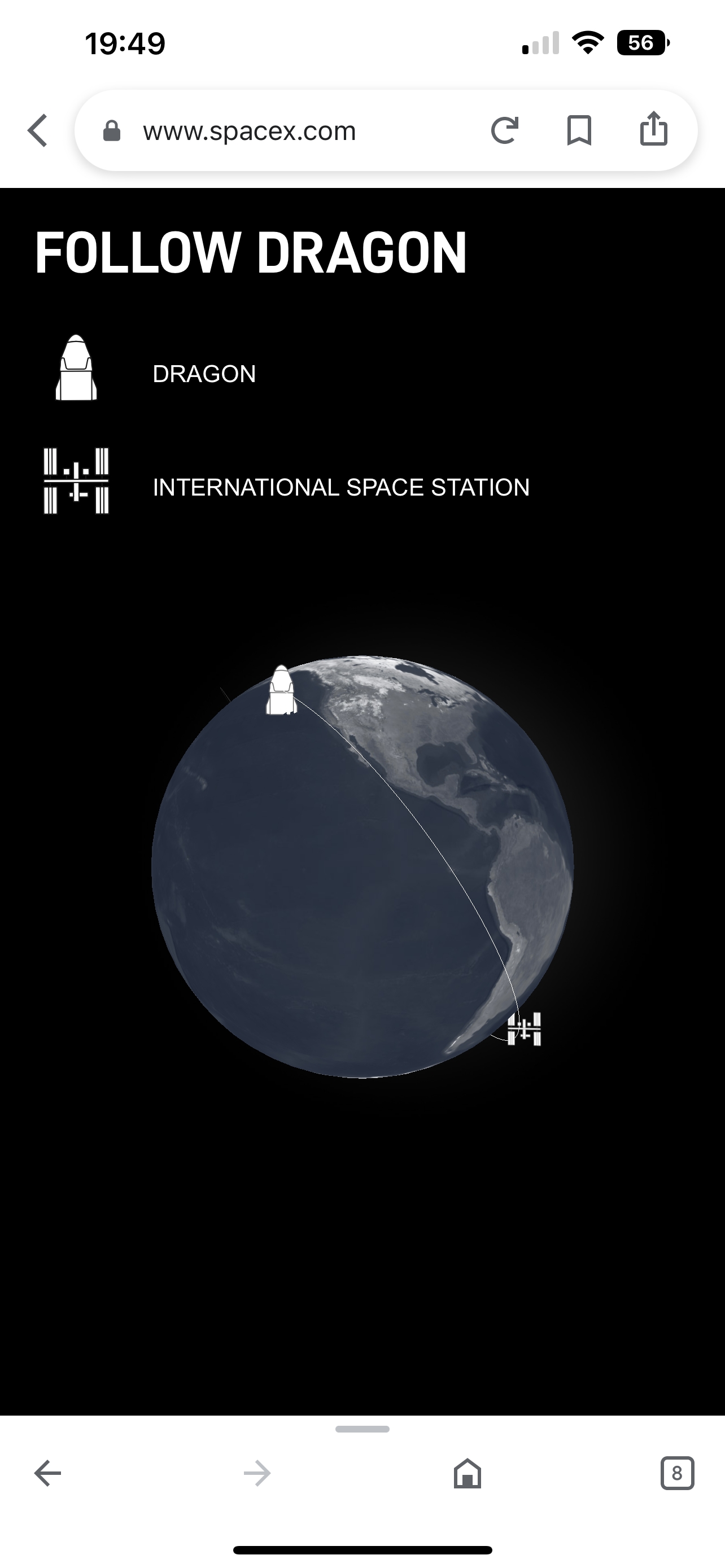 They have to be in the same orbital plane, which means that Dragon will be over SoCal in about 25 to 30 minutes. Right?