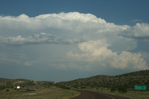 Big clouds. Bright white from a distance, convection reaching for the heavens.