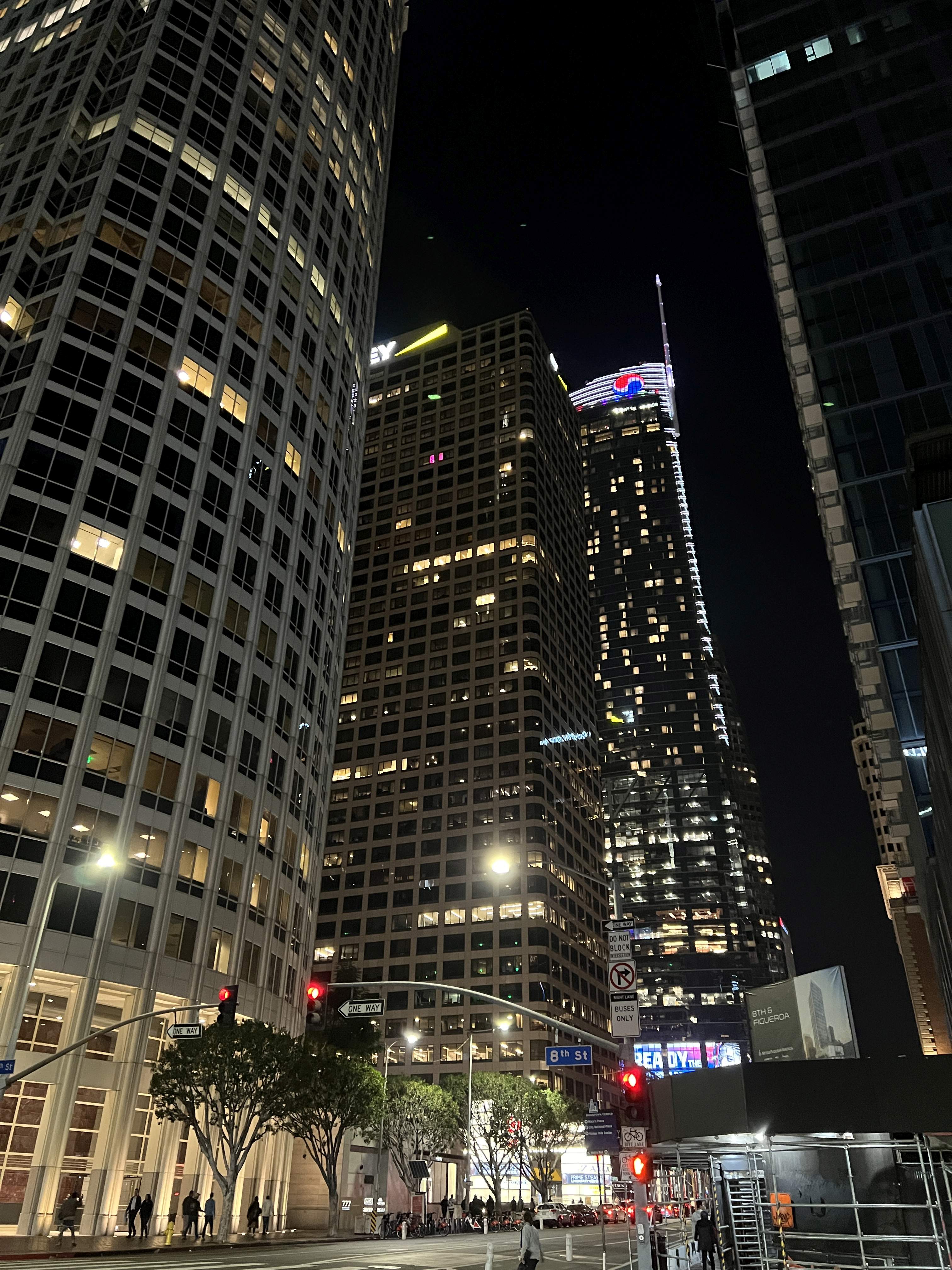 Later, walking to the subway station (did you know that LA has a subway/light rail system, and actually a pretty good one that’s growing every year?) I could see that downtown LA at night can be spectacular and beautiful.