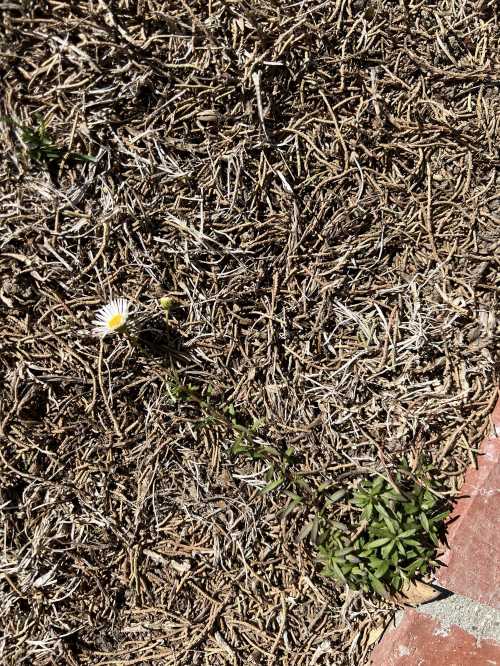 This corner of the yard has NOT done will with the watering restrictions. Well, except for that ONE shoot of green up there near the top.