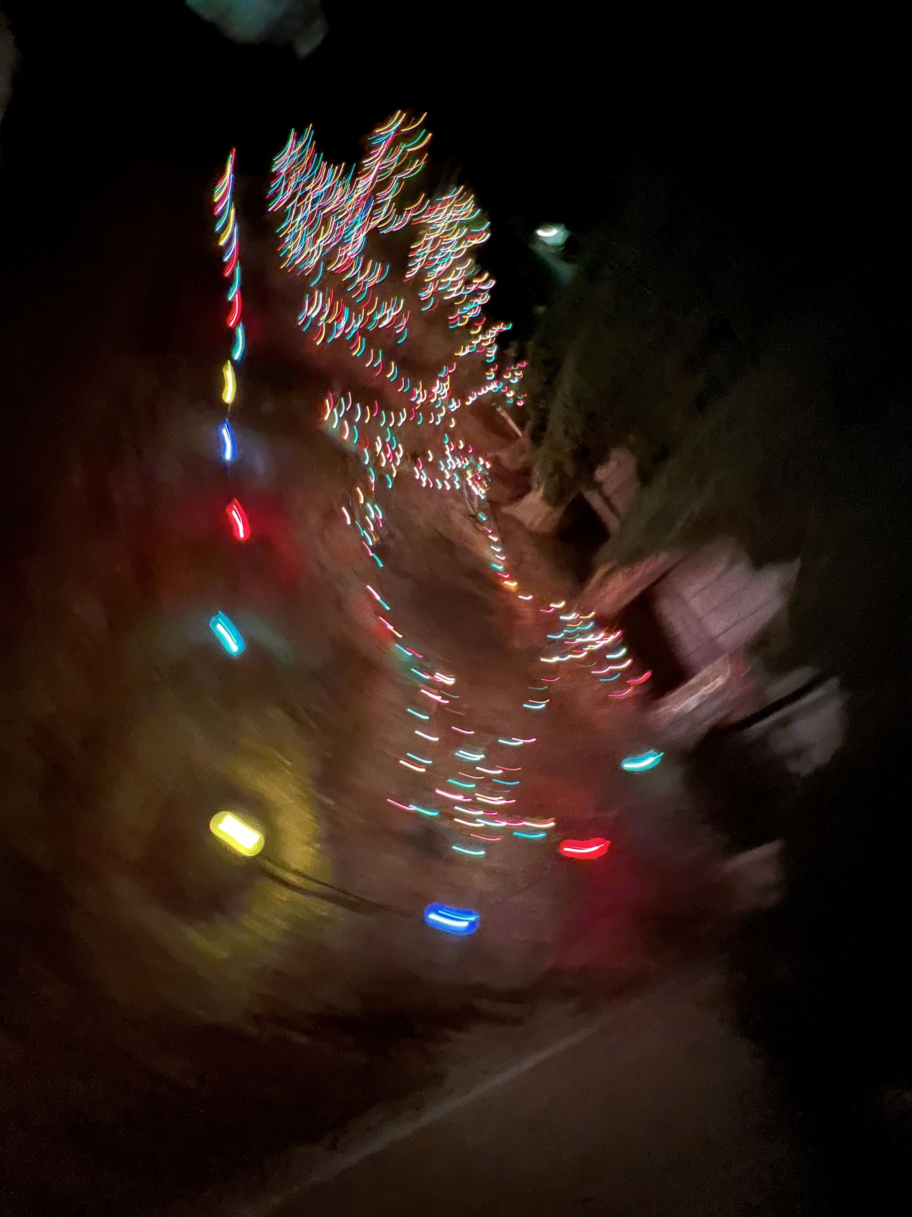 With an older smart phone there wasn’t as much logic in the phone, not as much computational wizardry on call with every photo, so if, for example, you took a picture of Christmas lights at night and moved the phone during a longer exposure of several seconds, you could get some interesting light trails. If you wanted nice, pinpoint lights with perfect Normal Rockwell focus, you needed a tripod or a miracle.