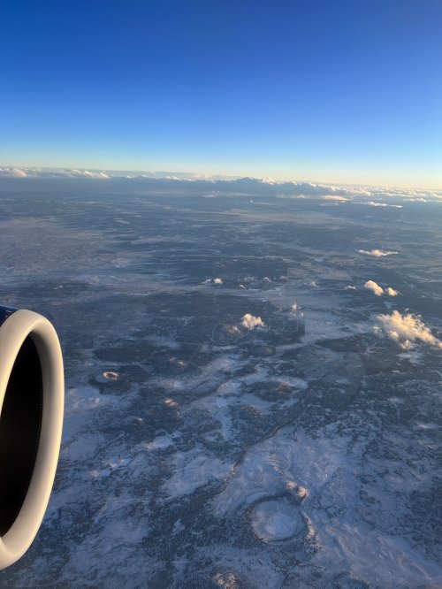 Flying back on Monday, over New Mexico, near sunset, snow covered landscape and I see this odd formation near the bottom of the picture.