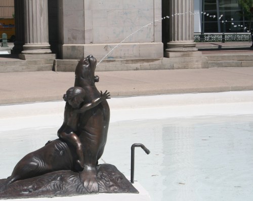 I’m a sucker for taking pictures of statues, and god knows there were enough of them on this day. Lots of Native Americans, wilderness dudes, cowboys, and so on. But this one of the spouting seal and child was the one that tickled my fancy the most.