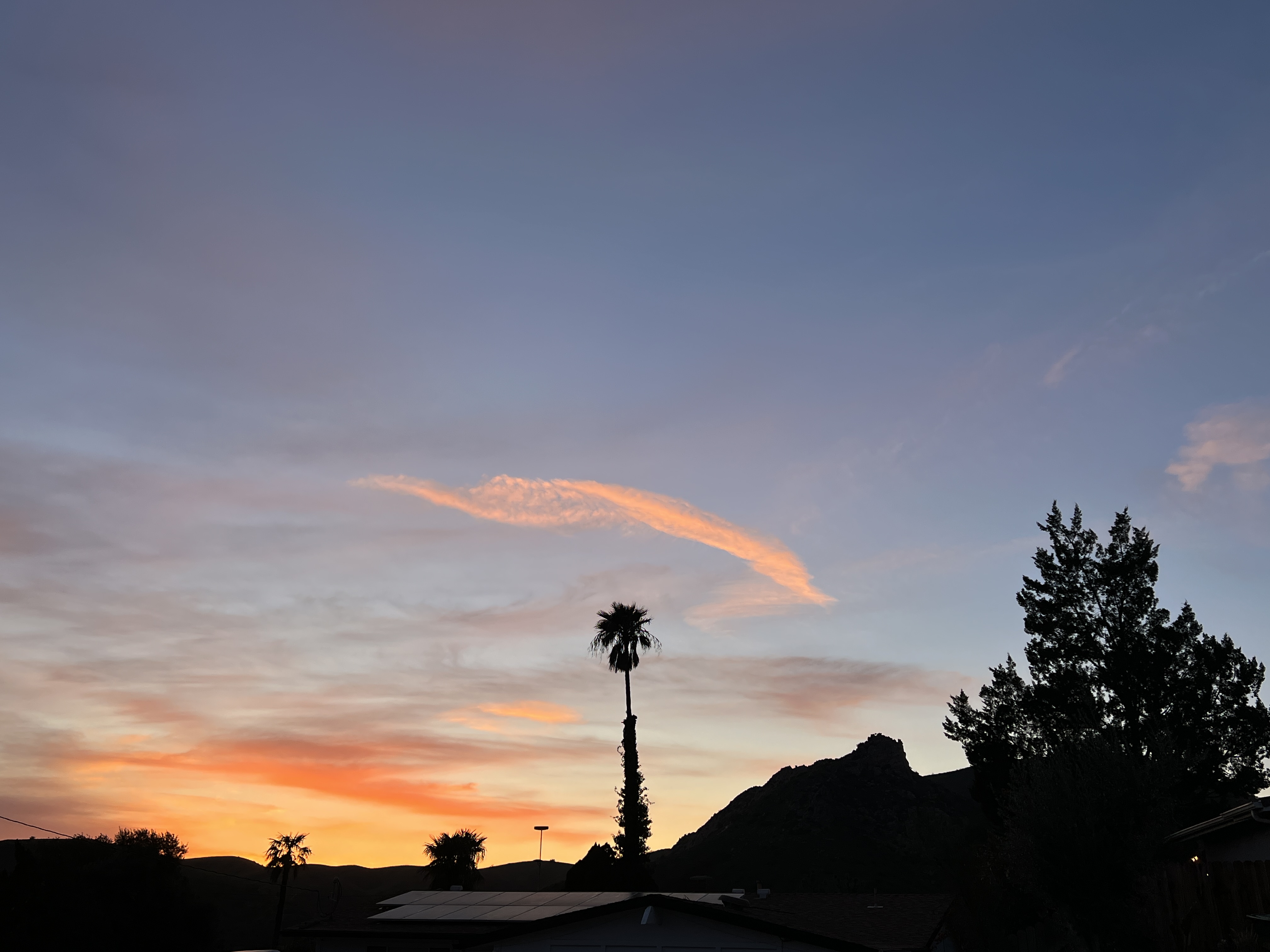 There are views of the sunset to the west (where else would it be?) that don’t involve the neighbors’ houses across the street, a dozen power wires, a street light, and that stand of really tall palm trees.