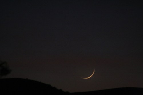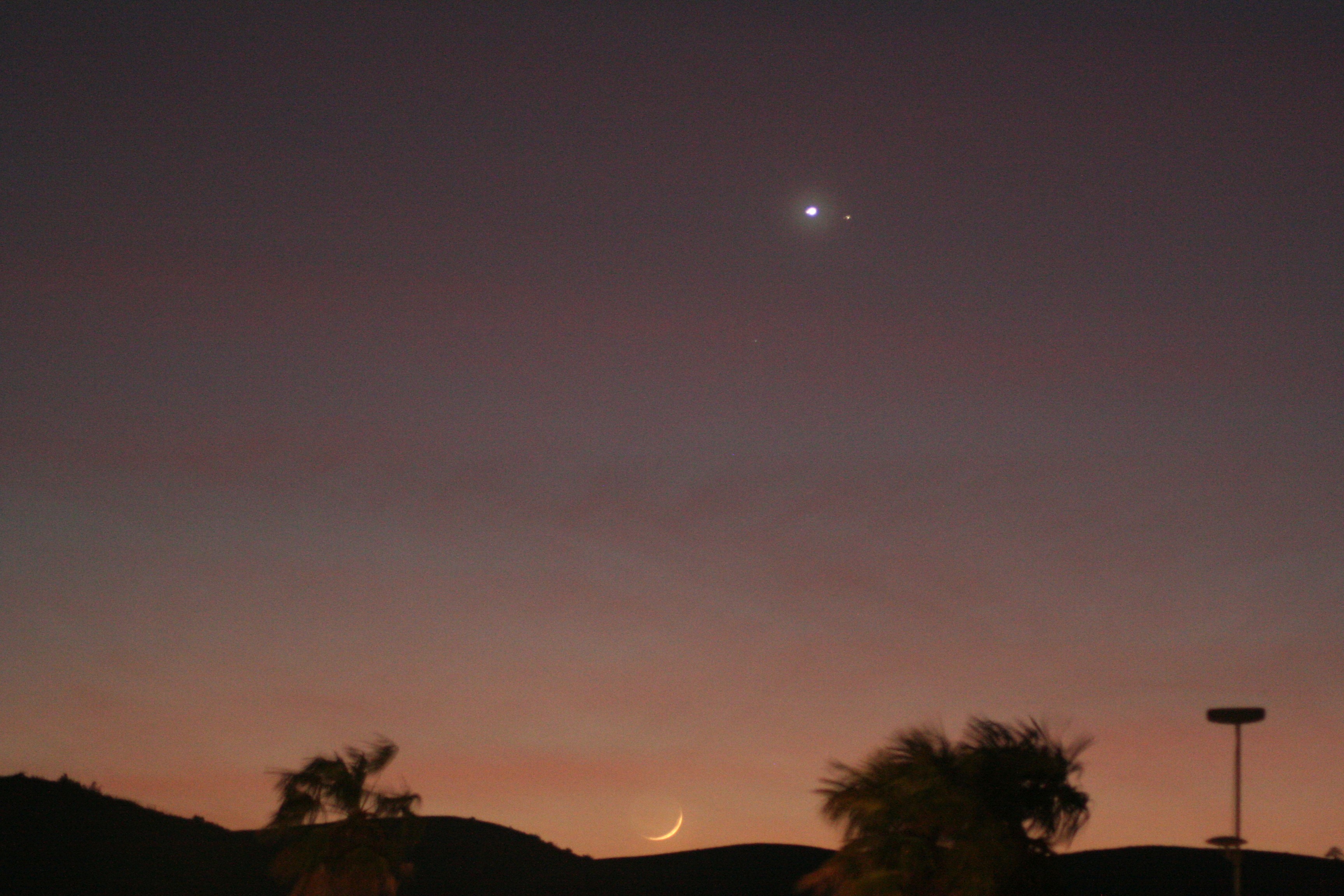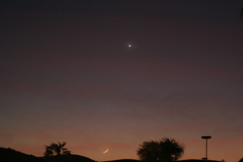 Stupid moi! I had sort of forgotten about that whole “moon” thing that’s two days past new moon and just the tiniest of slivers hanging there just barely above the horizon.