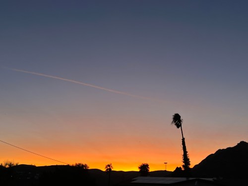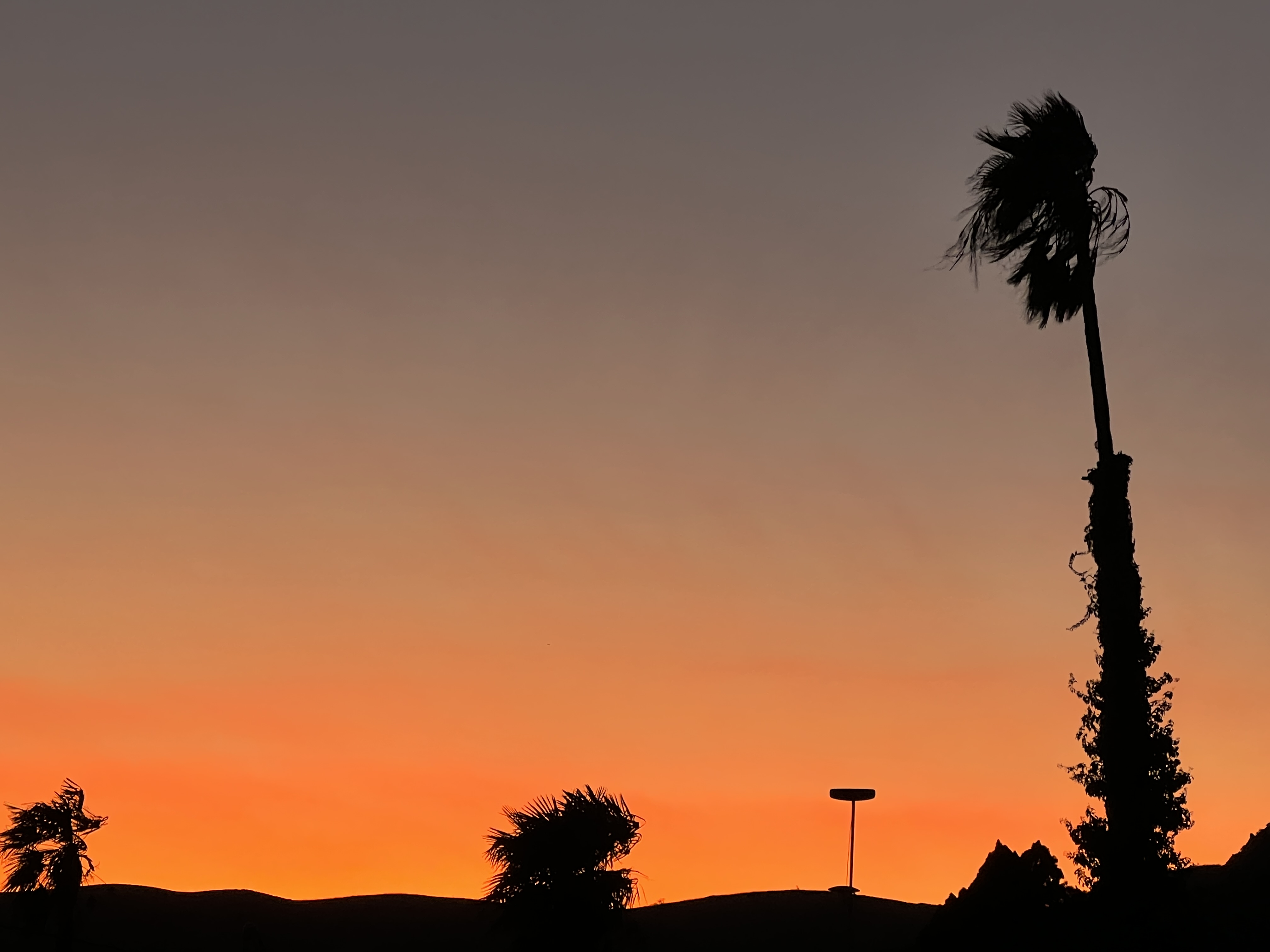 The other factor which I hadn’t taken into consideration was the wind. It is freakin’ howling out there, as you can see from the palm trees. I’m glad that I shot a lot of pictures, since most of them are blurred as all get out, even with the use of my heavy, “good” tripod.