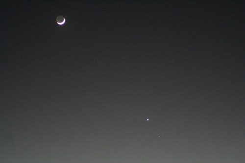 But overexpose the illuminated crescent and the Earthshine-lit face of the moon is clearly visible.