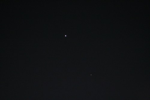 Pulling out the iPhone for the wide angle picture, Saturn fades away completely, but now we’ve got Jupiter visible at the top.