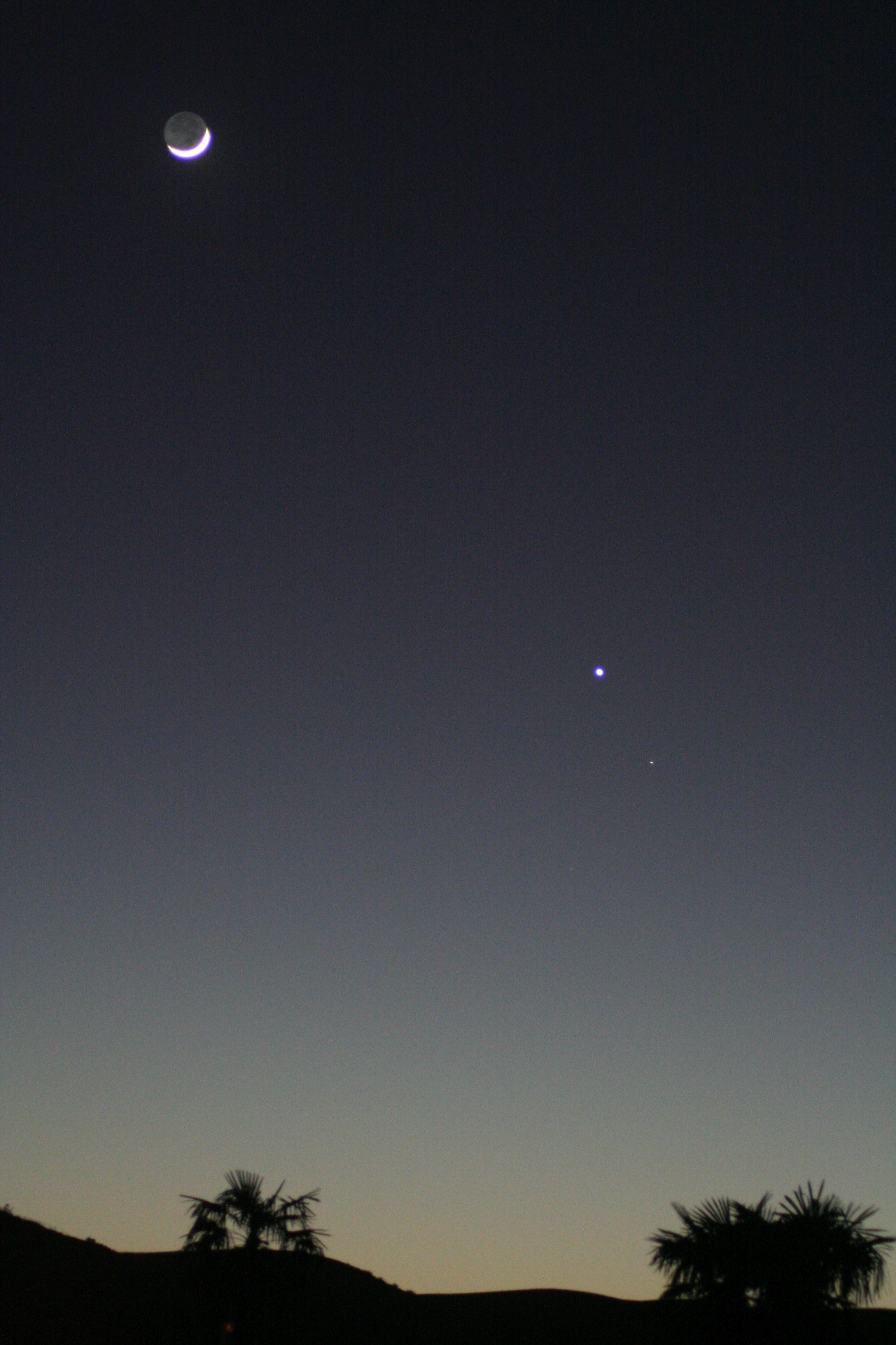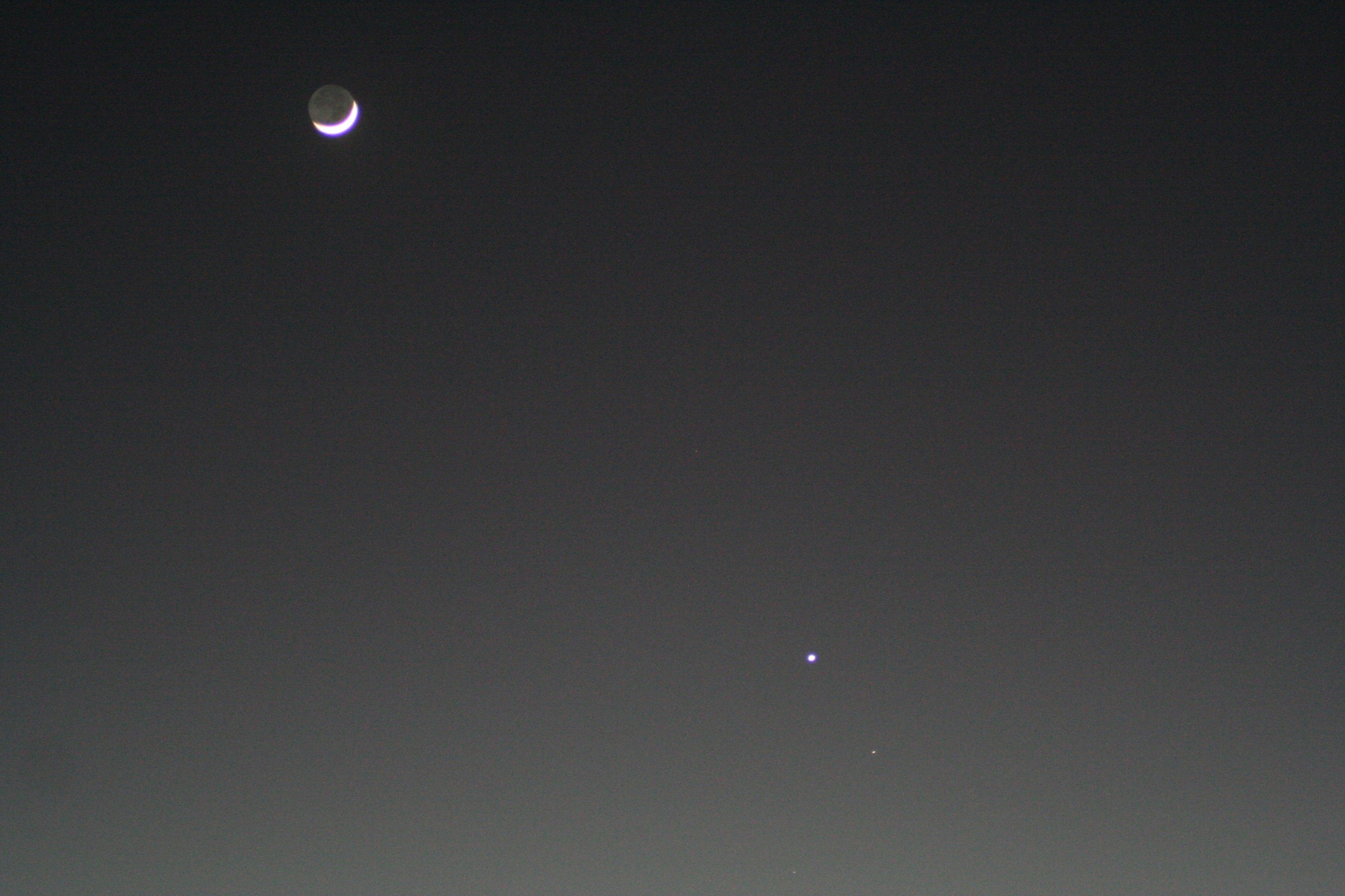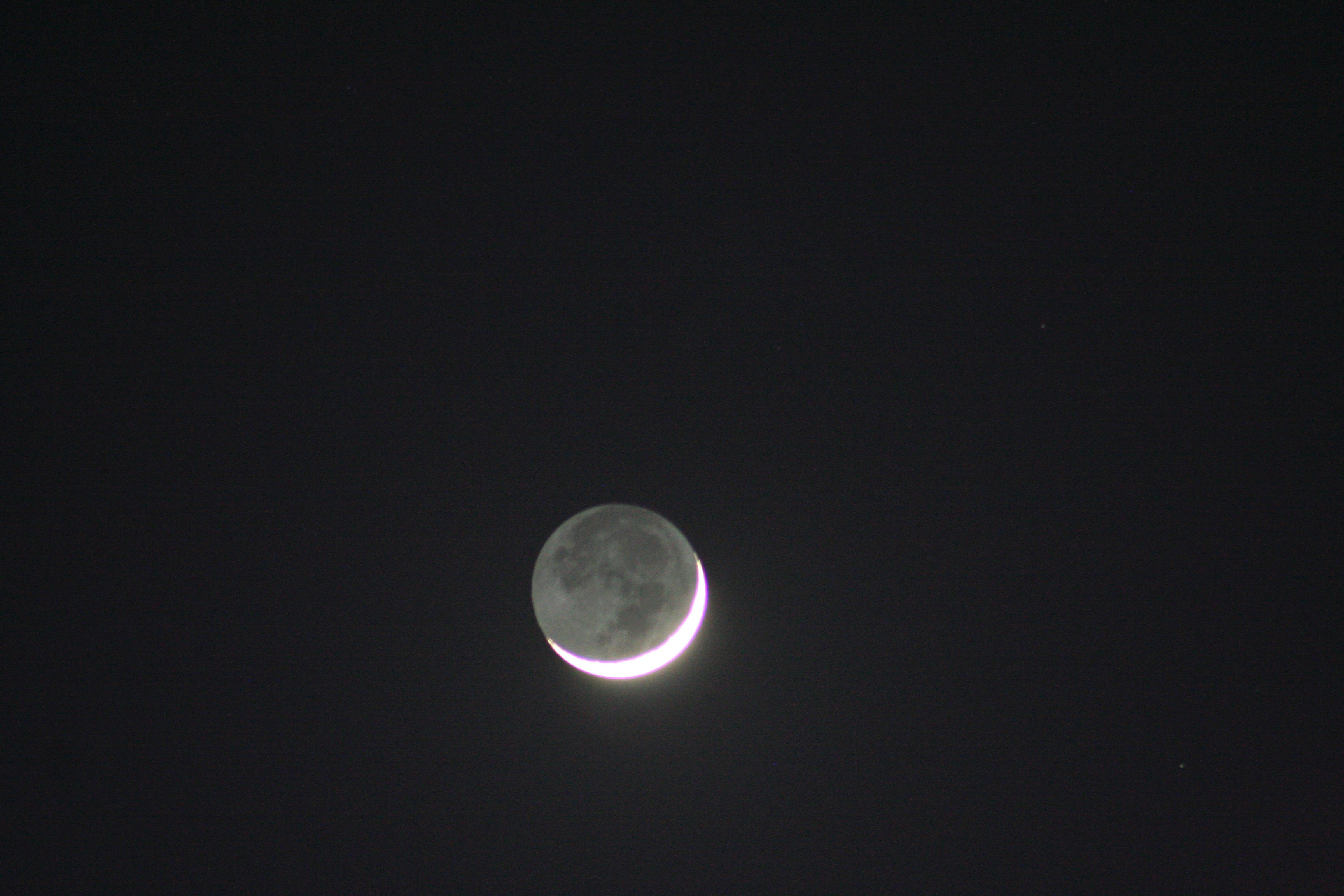 But overexpose the illuminated crescent and the Earthshine-lit face of the moon is clearly visible.