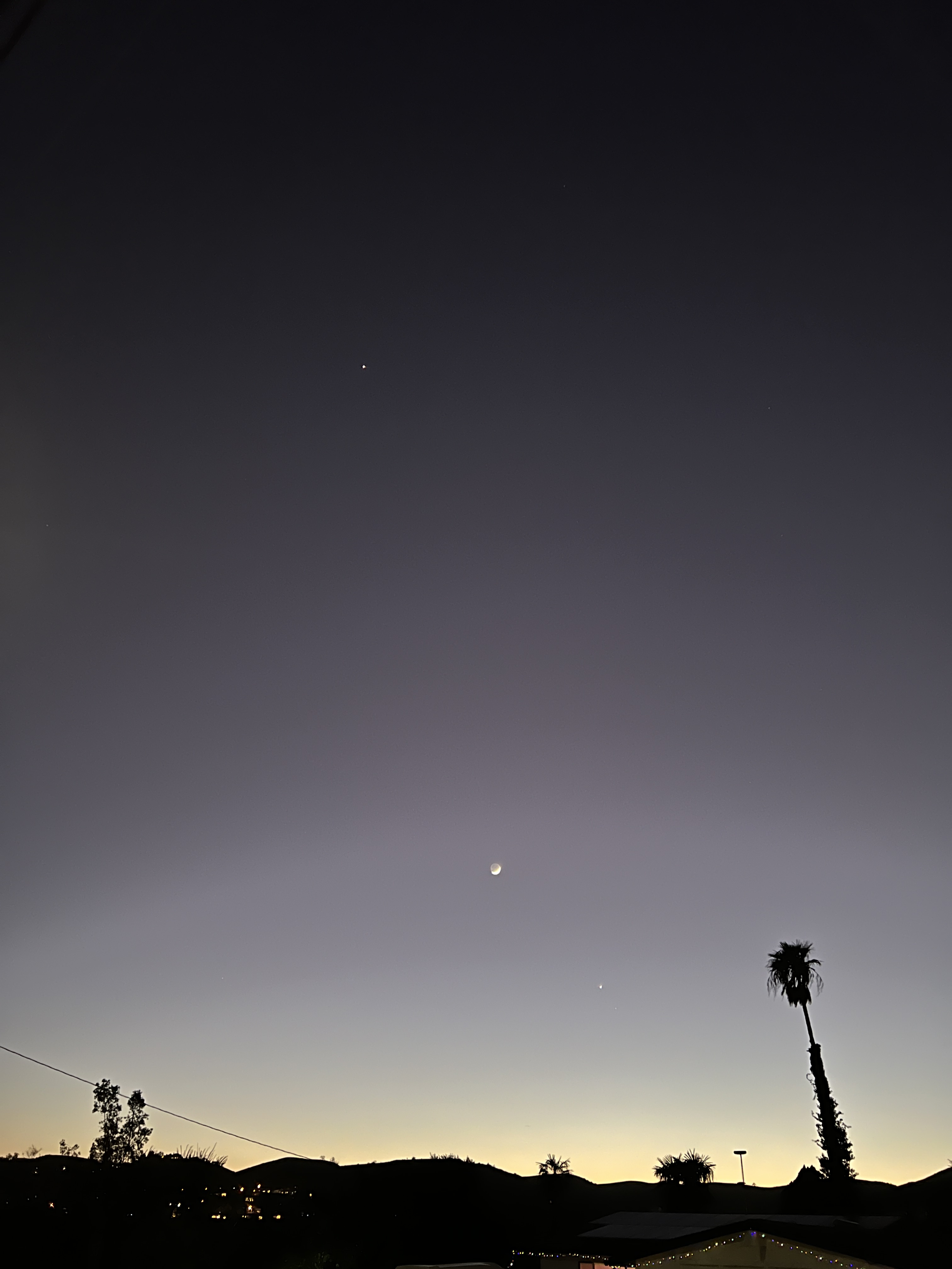 Pulling out the iPhone for the wide angle picture, Saturn fades away completely, but now we’ve got Jupiter visible at the top.
