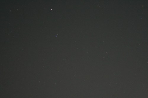 Shooting blind, bracketing the framing, I finally identified that I was aiming too high on the first two sets of photos, so I went back out for a third. Do you see the fuzzy, faint, green dot? That’s the comet.