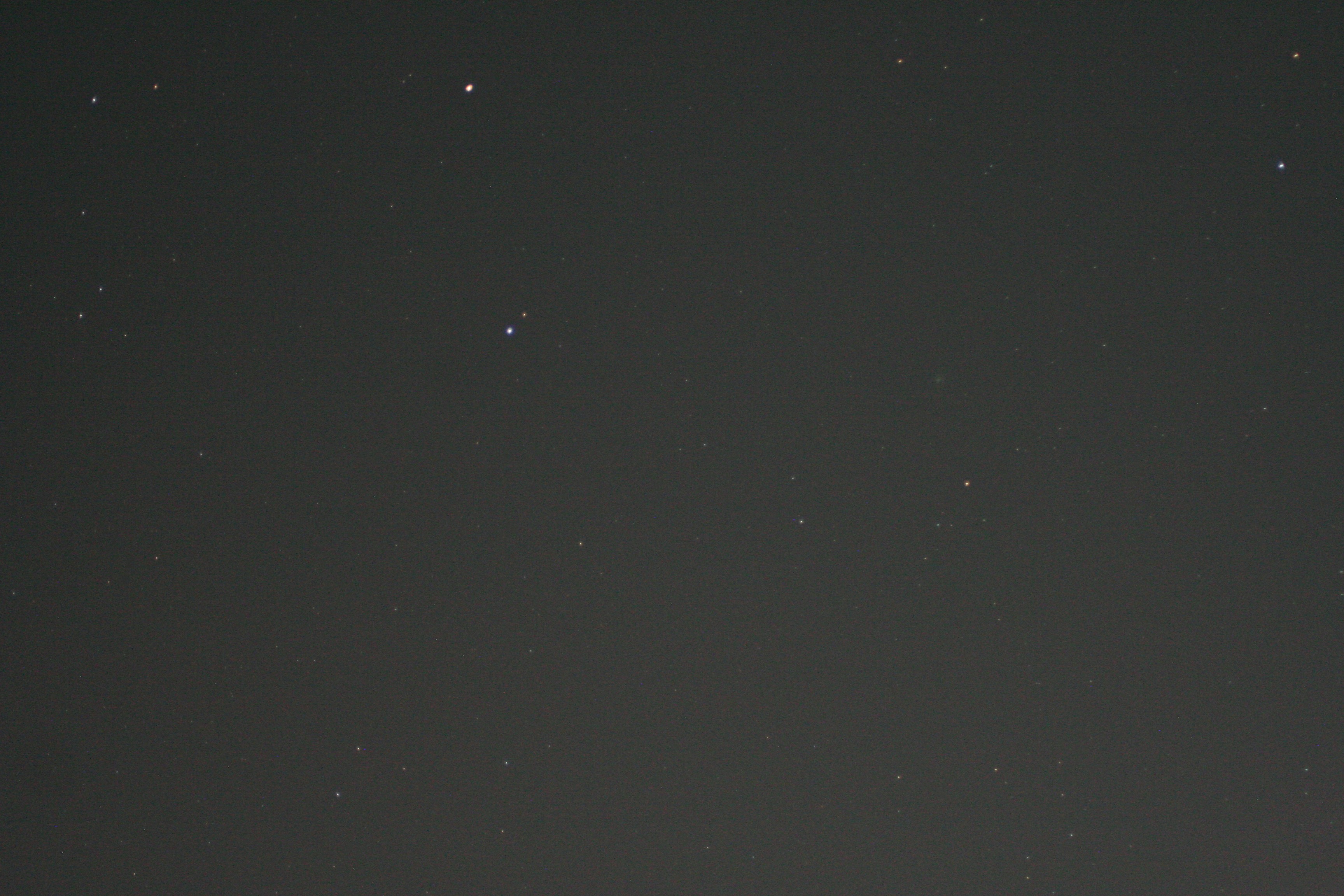 Shooting blind, bracketing the framing, I finally identified that I was aiming too high on the first two sets of photos, so I went back out for a third. Do you see the fuzzy, faint, green dot? That’s the comet.