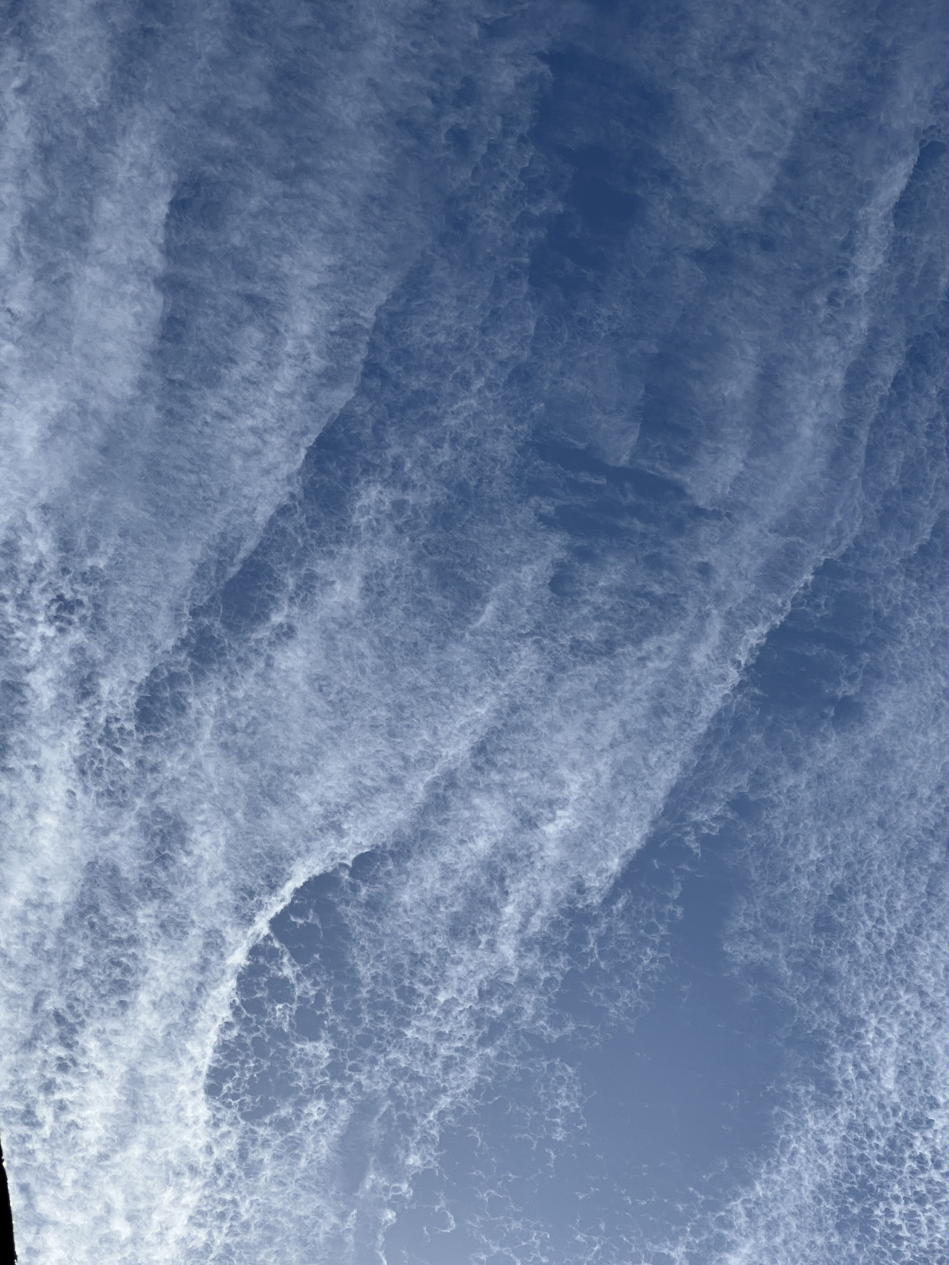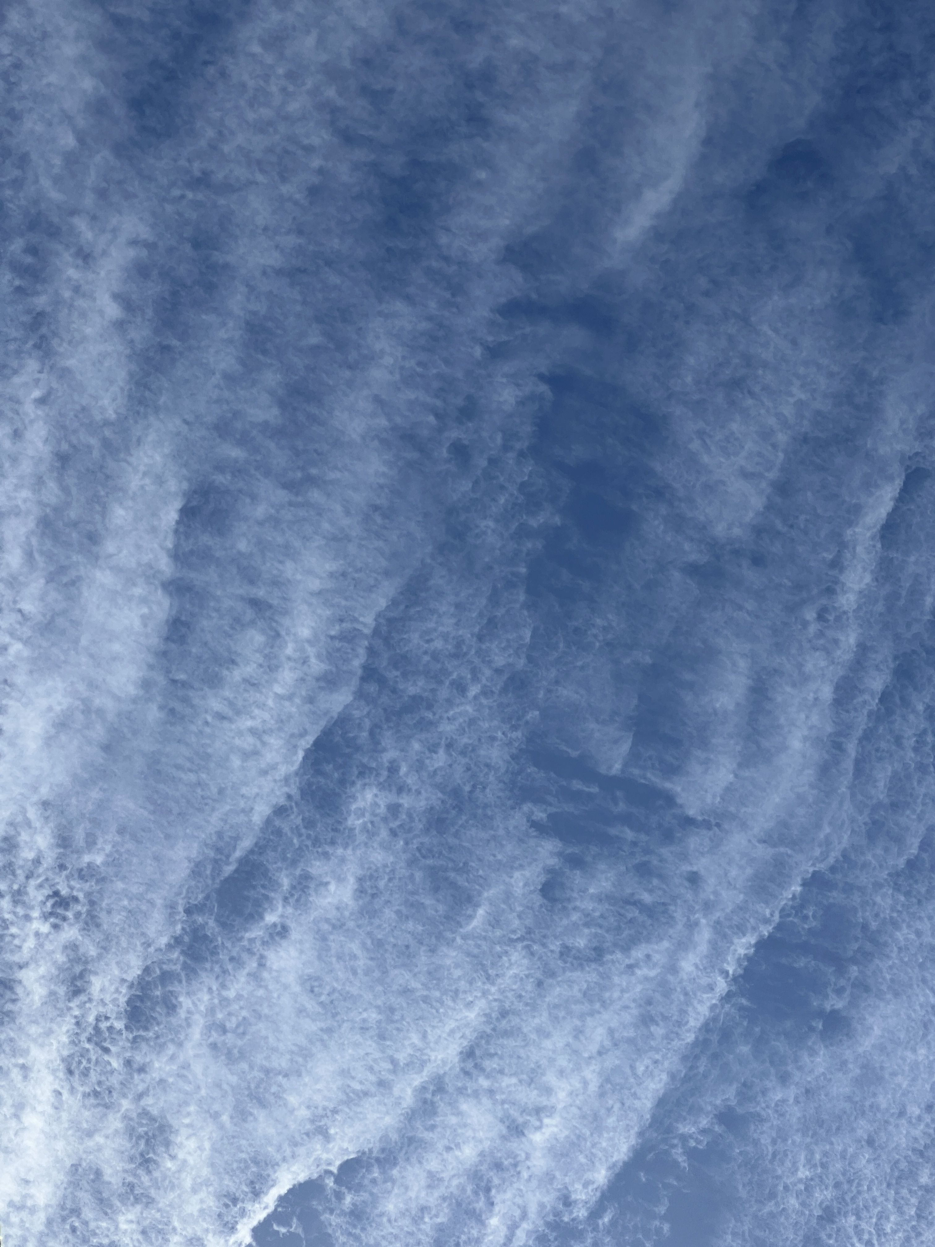 Watch as the sheets of clouds above you start to shred and tear, like enormous spiderwebs torn by a bird flying through them.