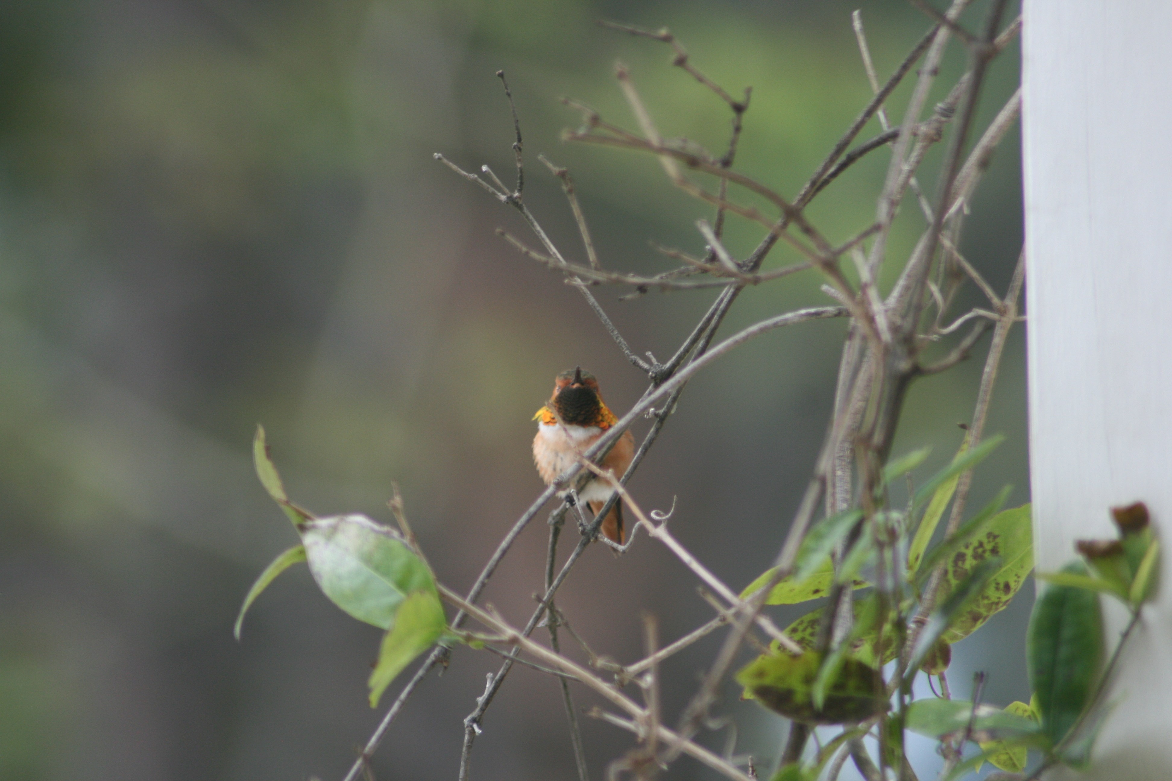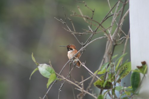 This is not Little Bastard. He’s an Allen’s Hummingbird. This one is (probably) a Rufous Hummingbird.