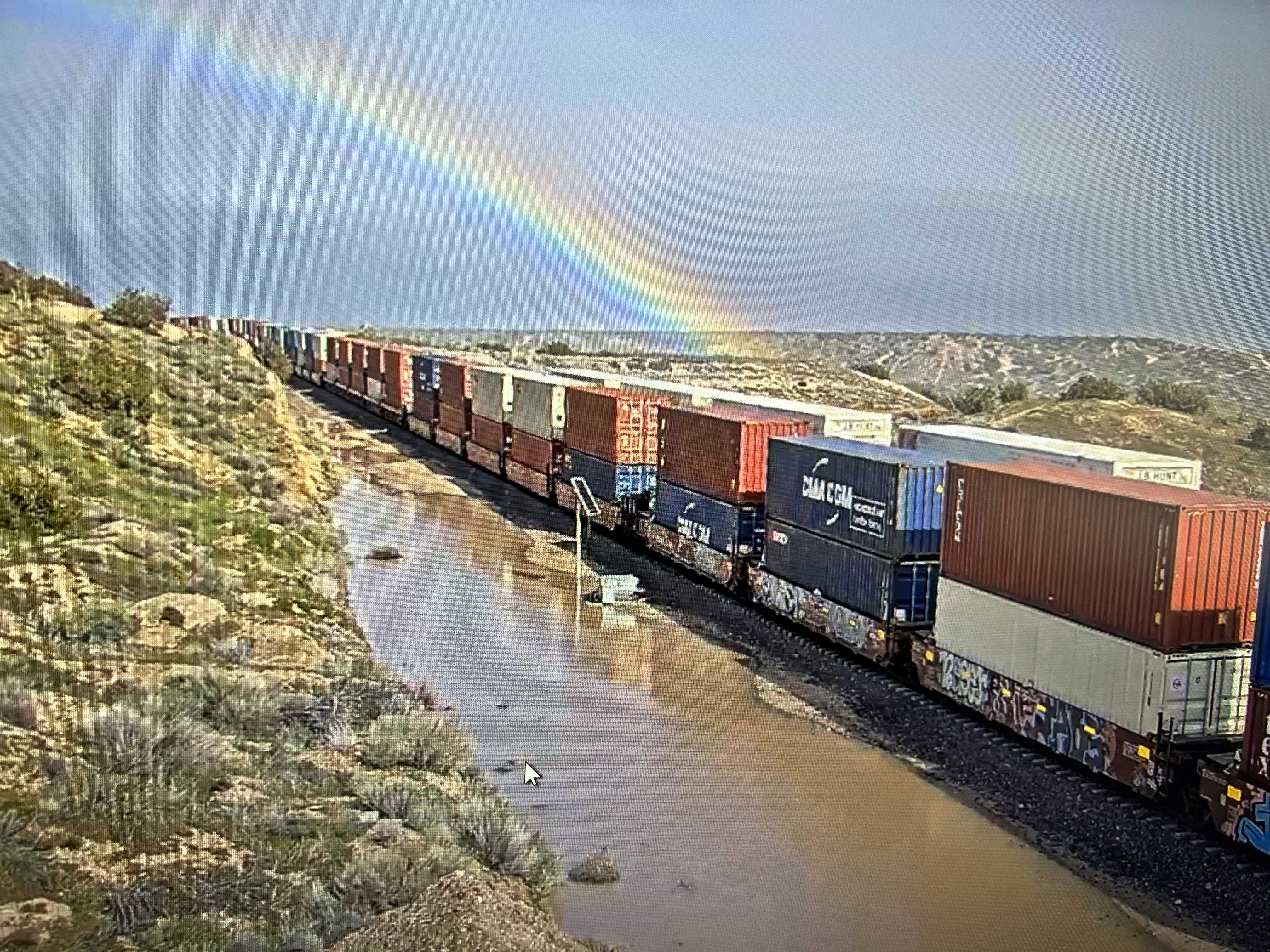 On my secondary desktop I had one of the Virtual Railfan sites up and running as eye candy. Hesperia, CA, to be exact. (Which may become more important soon, but that’s a whole different story and crisis.)