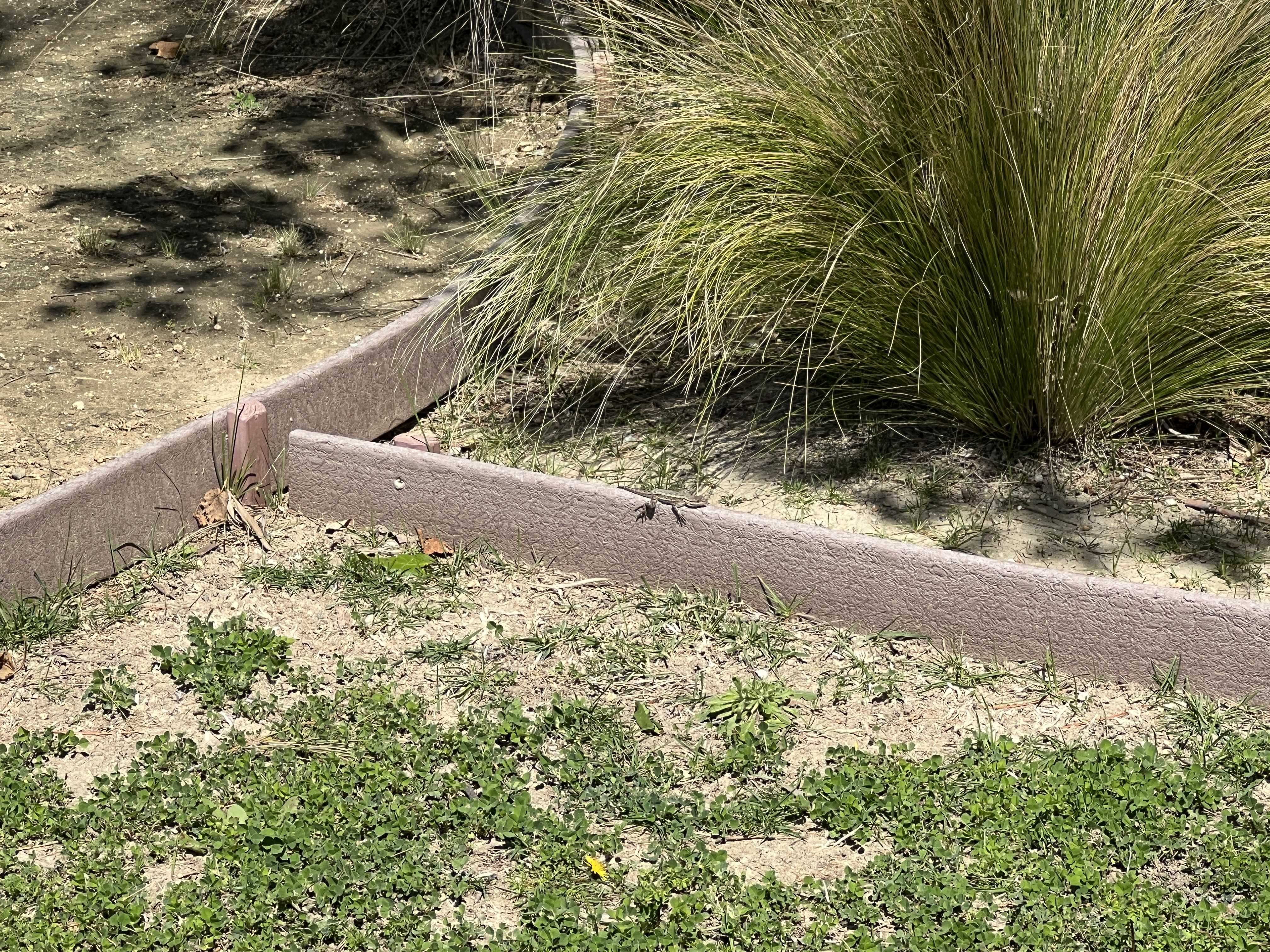 Right on top of this piece of edging was ideal for soaking up sun, and the width was perfect for it to straddle. Nice and stable, warm, relaxing – there was no way it was going to run away unless I was going to step on him or try to eat him.