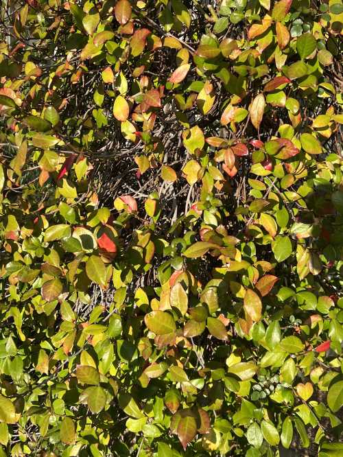 The rains left. Well, for a couple of days at least. They’re back now. But while the sun was out, all of a sudden these leaves all started turning red and yellow.