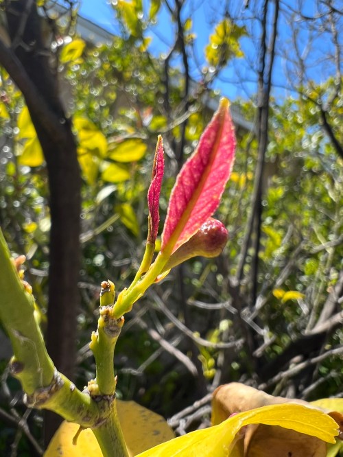 Big chunks of the lemon tree, probably 2/3 or more, are dead as can be and probably need to be pruned – but we’re renting and we have orders to not touch anything like that. The gardeners will do if, if and when they get instructions to do so. (Reason #3813 why I would really, REALLY like to own my home again instead of renting.)
