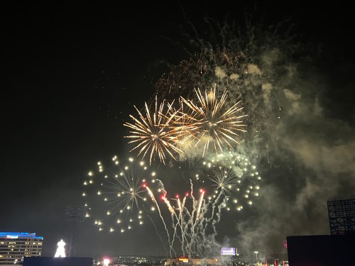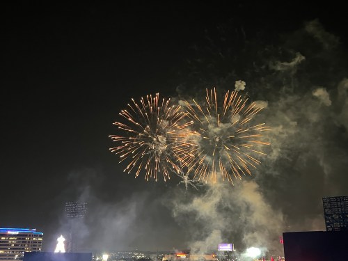 Last night we went to the Angels home opener. There were a lot of cool things, but we lost 4-5. Tonight we went back and saw a victory, an exciting game, and Saturday night fireworks after the game.