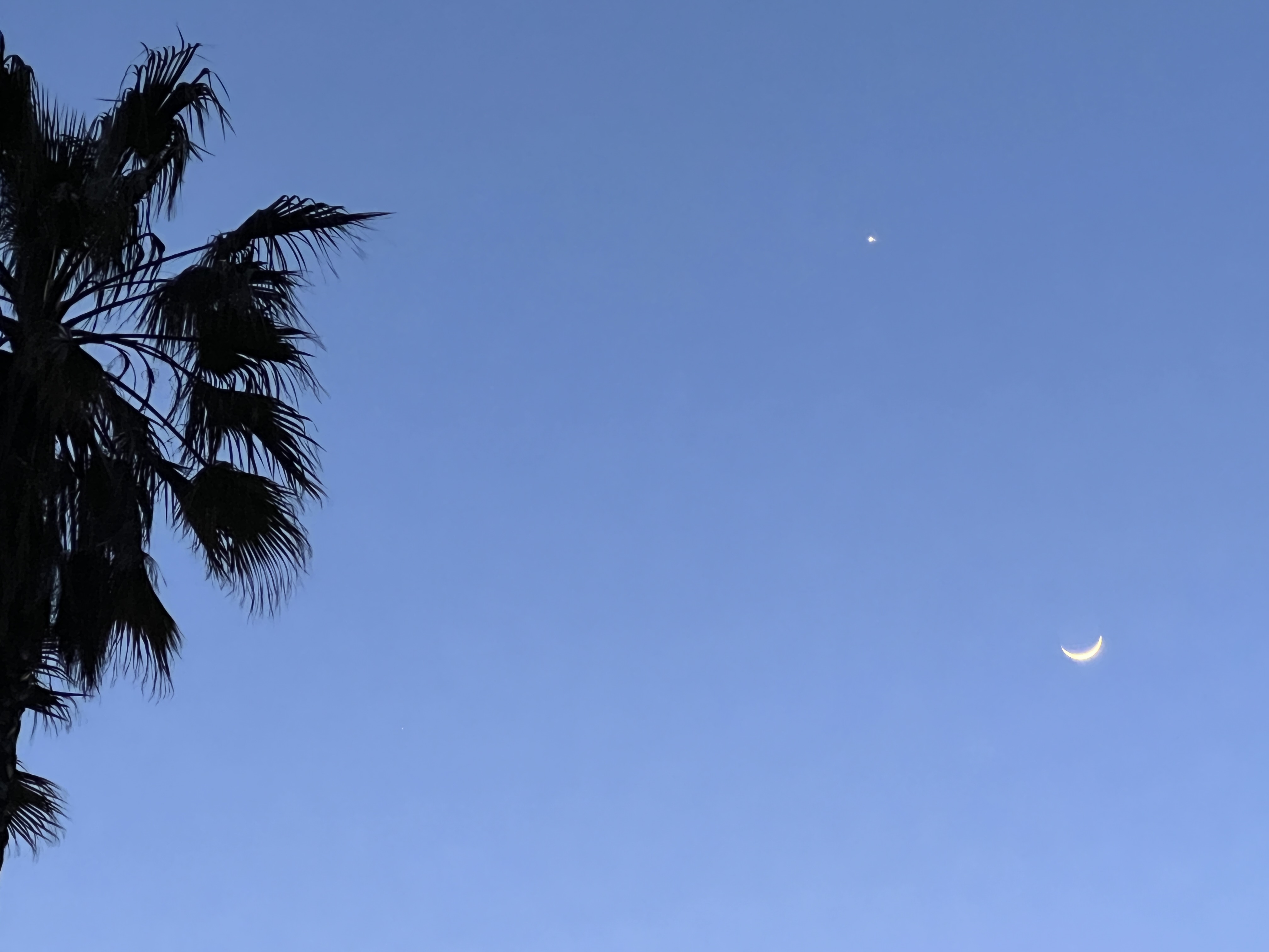 Mercury’s out there too, lower down in the sunset sky, more difficult to see. Maybe I’ll give it a try in the next couple of days. (Guess what shape and orientation it displays through a telescope right now?)
