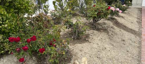 Last year was “thin” for roses – not getting any water will do that. They’re on a drip system, but even that was cut back to two days a week with the water rationing measures in place in SoCal.